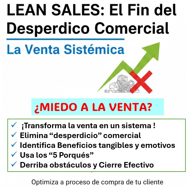 En la sesión se abordará cómo aplicar la cultura Lean al ciclo comercial para eliminar el desperdicio en los procesos de venta, identificar beneficios tangibles y emocionales para el cliente, utilizar los 5 porqués para superar bloqueos y facilitar el cierre y transformar la venta de una mera transacción a un sistema eficiente y orientado al valor.