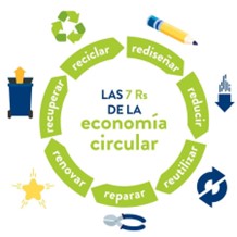 Las siete R de la elaboración de los productos y de la gestión de los residuos, que sirven de soporte a la Economía Circular son: rediseñar, reducir, reutilizar, reparar, renovar, recuperar y reciclar. En su conjunto, forman una potente iniciativa por medio de la cual sustituimos la insostenible economía lineal actual, basada en extraer materias primas finitas, transportarlas, fabricar productos, distribuirlos, usarlos y tirarlos como residuos, en otro modelo donde todas las personas podemos preservar el medio ambiente y, al mismo tiempo, fomentar la economía circular.