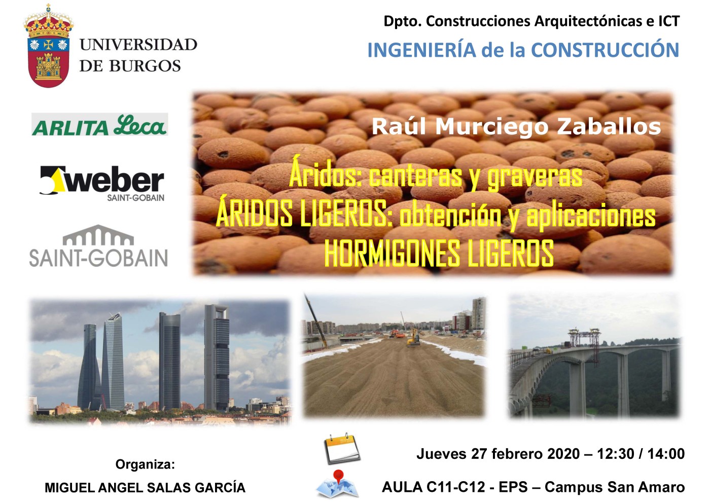 La conferencia se centrará en canteras y graveras, la extracción y tratamiento de áridos, el proceso industrial para la obtención de la Arcilla Expandida, sus características y principales aplicaciones.