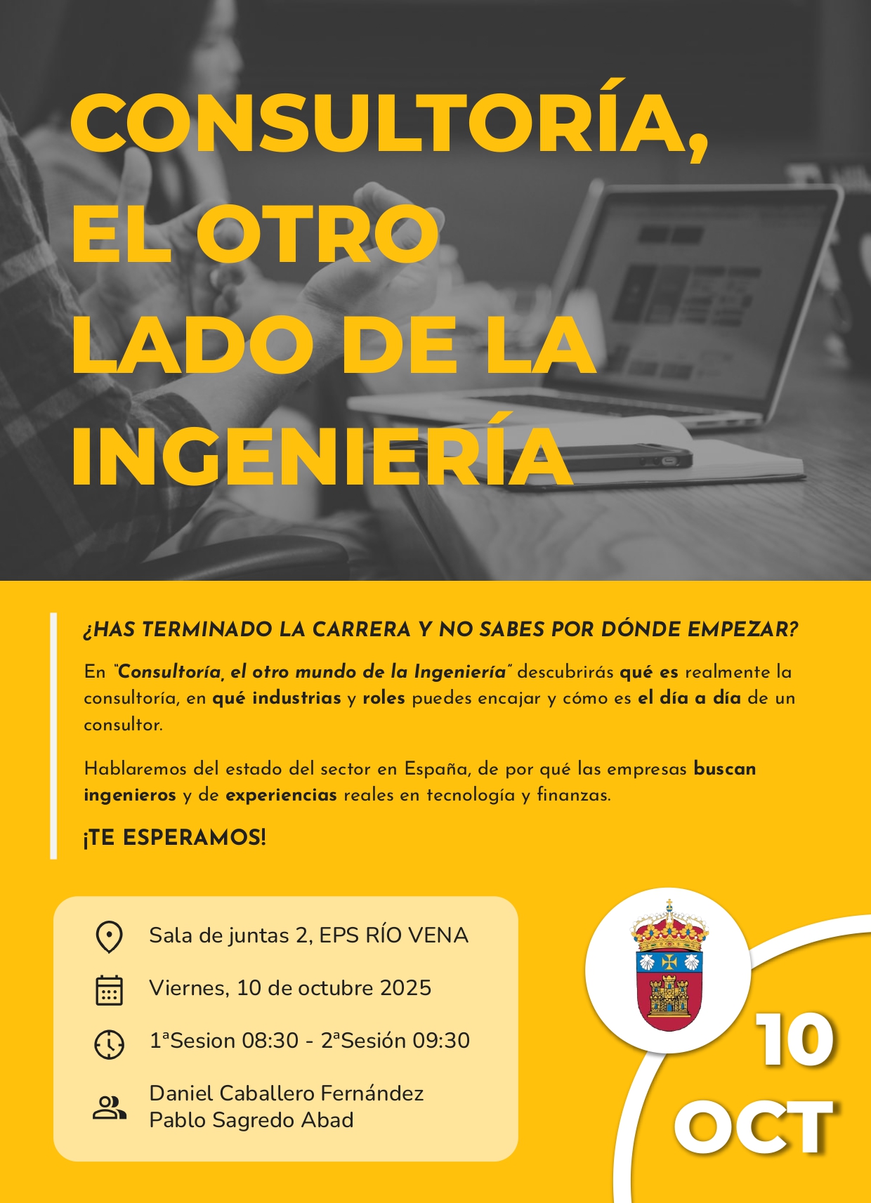 En “Consultoría, el otro mundo de la Ingeniería” descubrirás qué es realmente la consultoría, en qué industrias y roles puedes encajar y cómo es el día a día de un consultor. Se realizarán dos sesiones consecutivas en las que hablaremos del estado del sector en España, por qué las empresas buscan ingenieros y de experiencias reales en tecnología y finanzas.