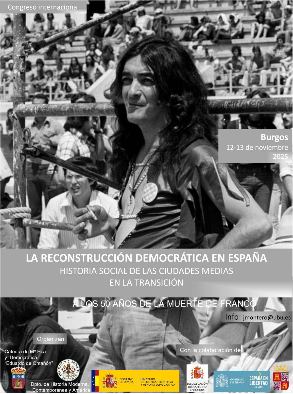 Con motivo de los actos conmemorativos de los 50 años por la muerte de Franco que promueve el Gobierno de España, la Cátedra de Memoria Histórica y Democrática Eduardo de Ontañón de la Universidad de Burgos, junto con el Departamento de Historia Moderna, Contemporánea y de América de la Universidad de Valladolid, organizan el Congreso Internacional “La reconstrucción democrática en España. Historia social de las ciudades medias en la Transición” que tendrá lugar entre los días 12 y 13 de noviembre de 2025 en la Universidad de Burgos.