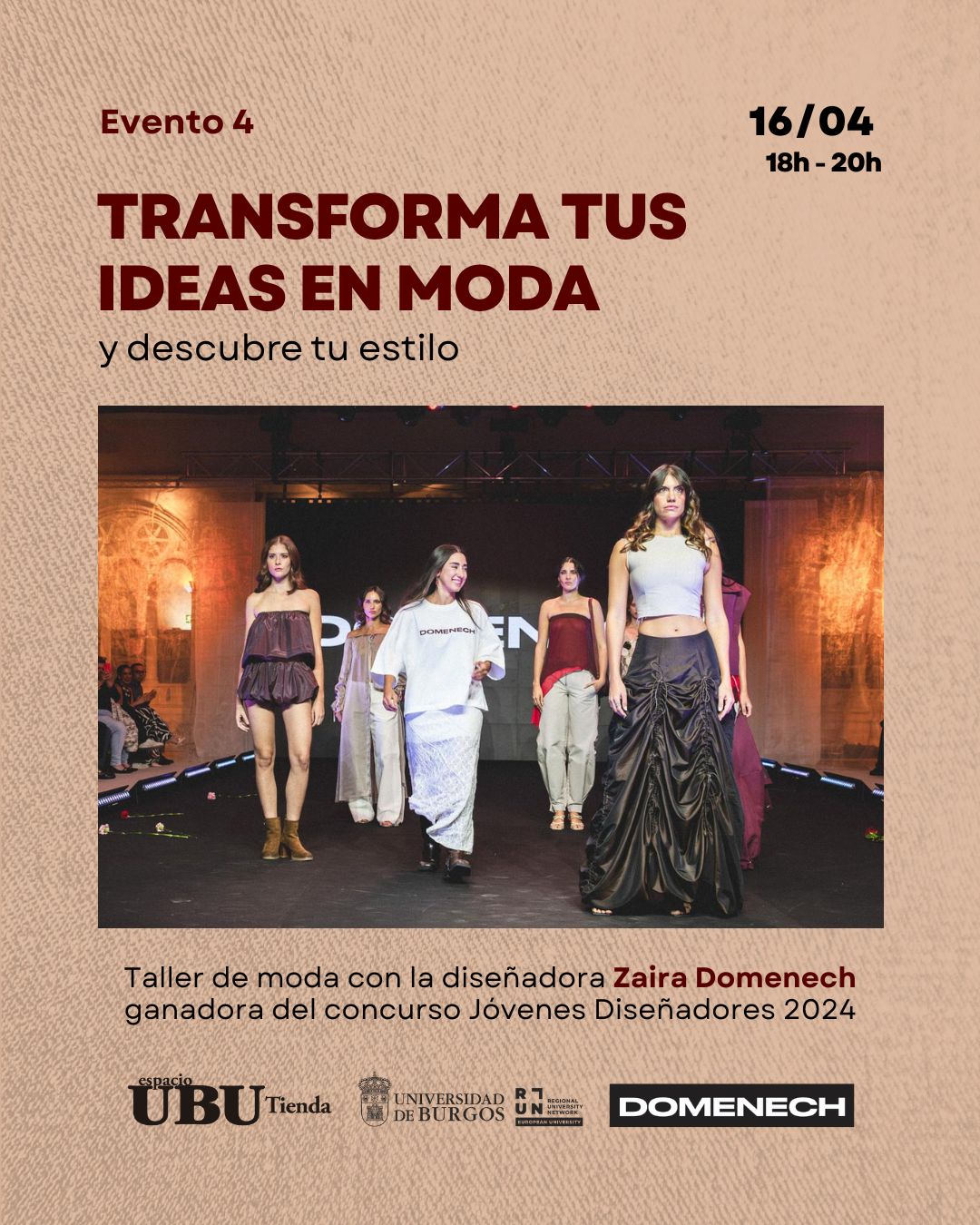 El taller constará de dos partes. En la primera, la diseñadora burgalesa compartirá su trayectoria y explicará cómo se desarrolla un proyecto de moda desde la idea inicial hasta la creación de una colección.