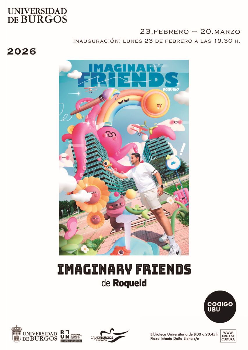 Roqueid presenta su exposición “Imaginary Friends”, el lunes 23 de febrero de 2026, en el Espacio Expositivo Código Ubu (Biblioteca Federico Sanz - Plaza Infanta Doña Elena s /n) a las 19:30 h.