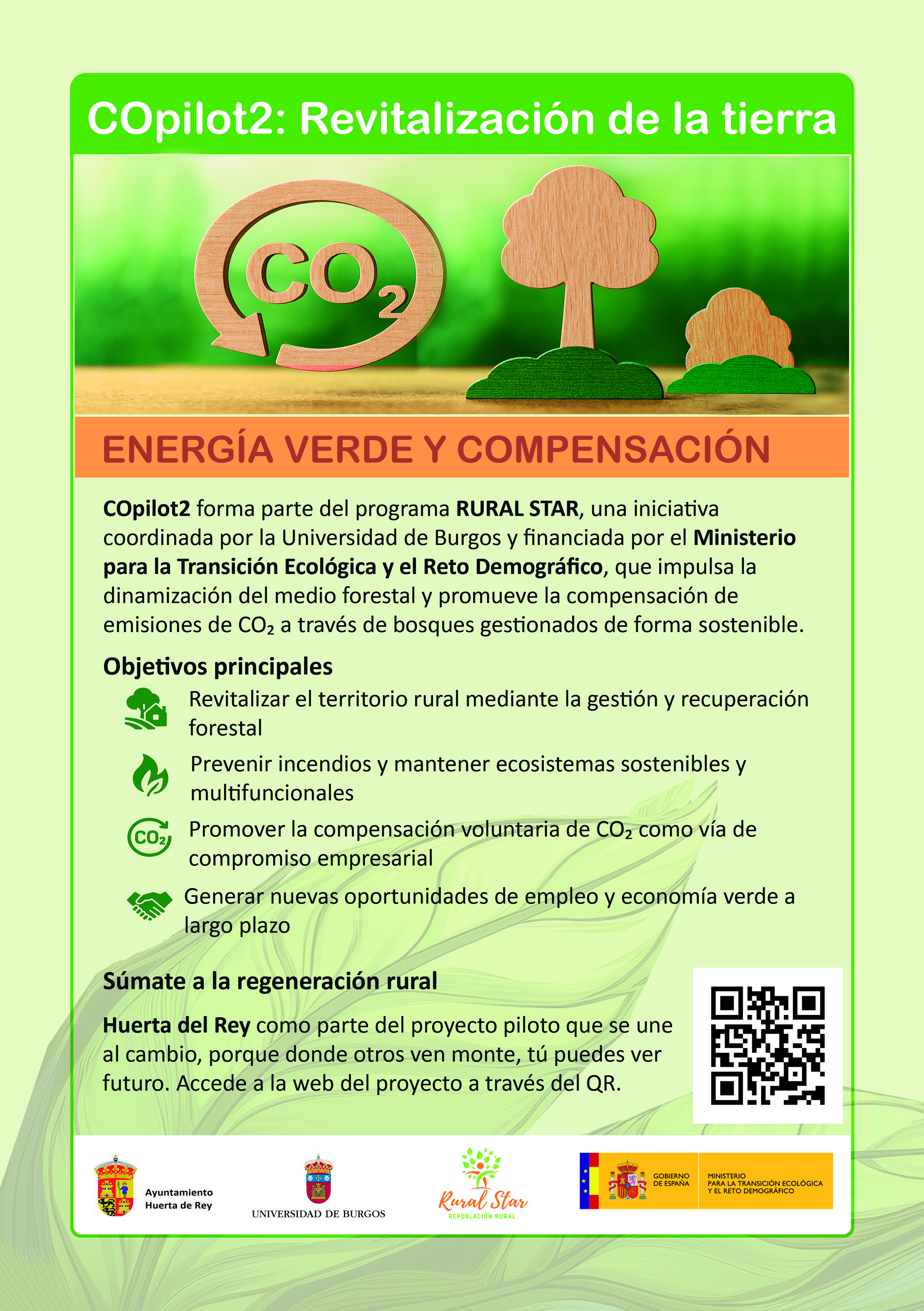 - COpilot2. Centrado en la dinamización del medio forestal y la recuperación de terrenos en desuso, ha ofrecido herramientas y asesoramiento para que propietarios forestales y entidades locales conozcan las oportunidades de inversión y compensación de emisiones de CO₂.