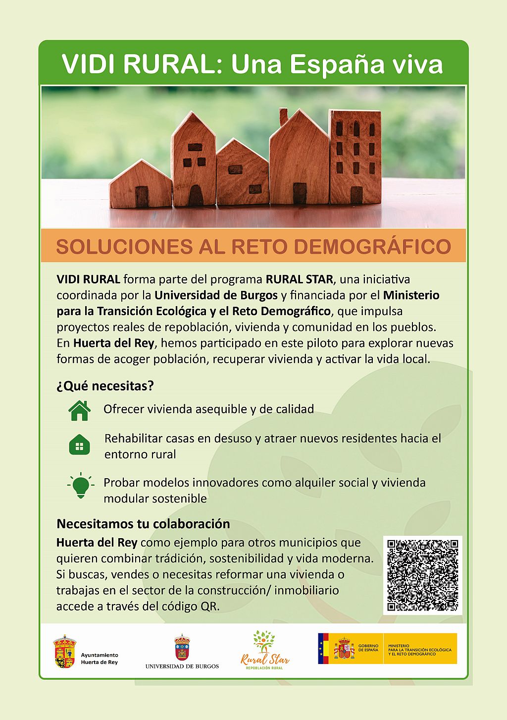 - VIDI Rural. Busca facilitar el acceso a la vivienda en nuestros pueblos mediante la identificación, rehabilitación y puesta en uso de viviendas disponibles.
