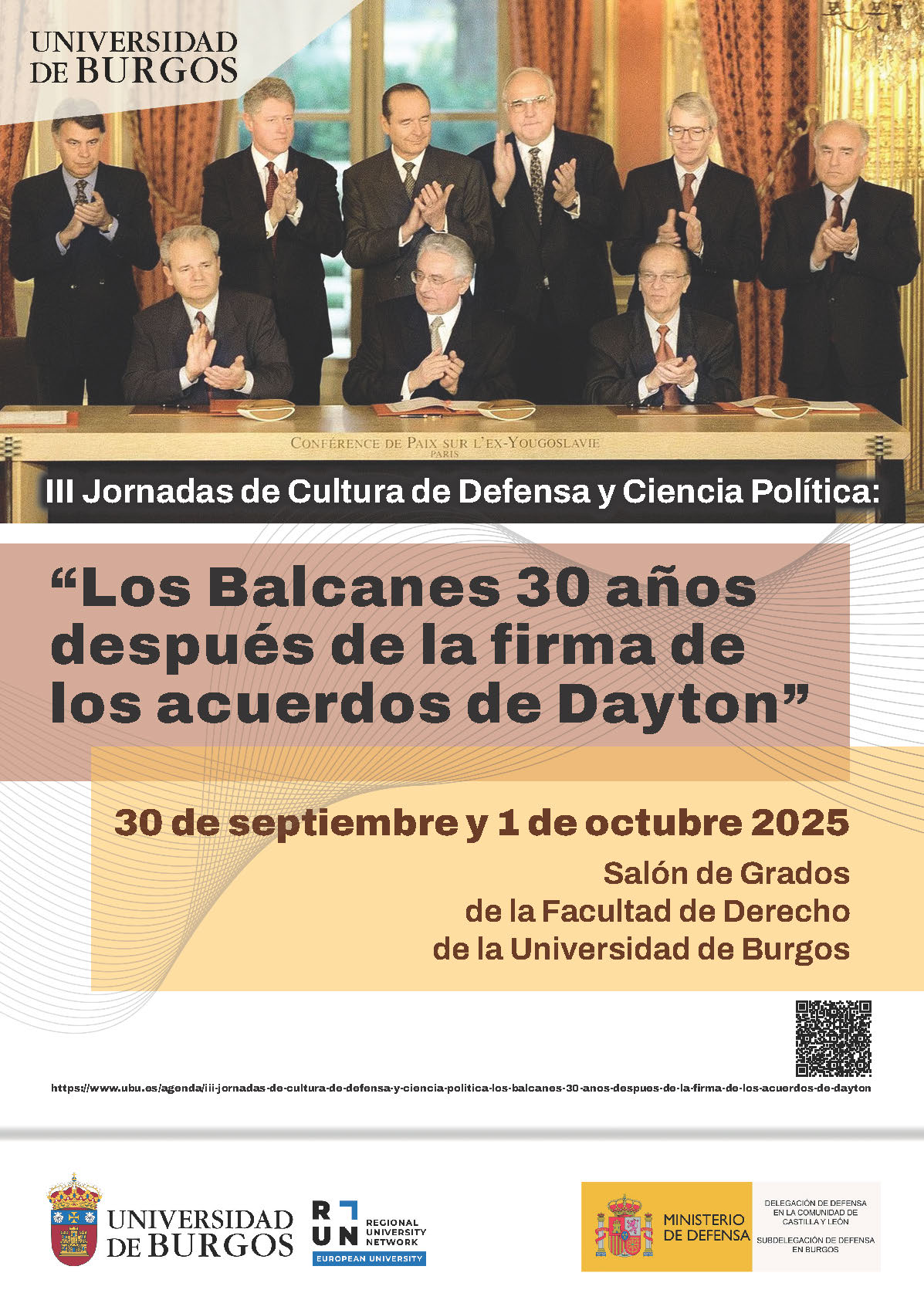 Con ese objetivo, la Universidad de Burgos acoge las III Jornadas de Cultura de Defensa y Ciencia Política, que esta vez tienen por título “Los Balcanes 30 años después de la firma de los Acuerdos de Dayton” y que se celebrarán en el Salón de Grados de la Facultad de Derecho los días 30 de septiembre y 1 de octubre. Estas sesiones reúnen a especialistas en ciencia política, relaciones internacionales, historia contemporánea y estudios estratégicos, junto a representantes institucionales, para analizar la herencia de los acuerdos de paz y los retos que afronta actualmente la región en relación con la Unión Europea y la seguridad internacional, incluida Vesna Andree Zaimovic, embajadora de Bosnia y Herzegovina en España.