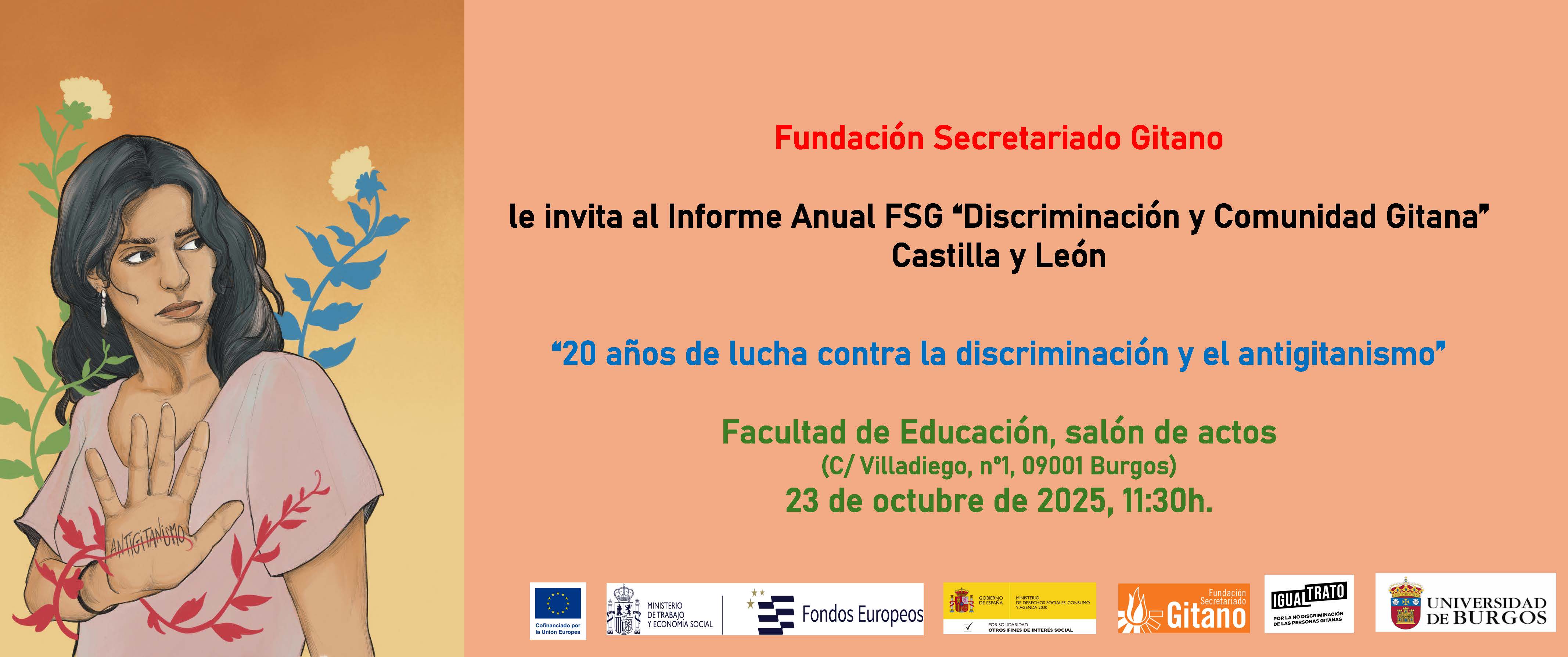 Fundación Secretariado Gitano presenta mañana jueves 23 de octubre el ‘Informe Anual FSG Discriminación y Comunidad Gitana Castilla y León’ en el salón de actos de la Facultad de Educación de la Universidad de Burgos.