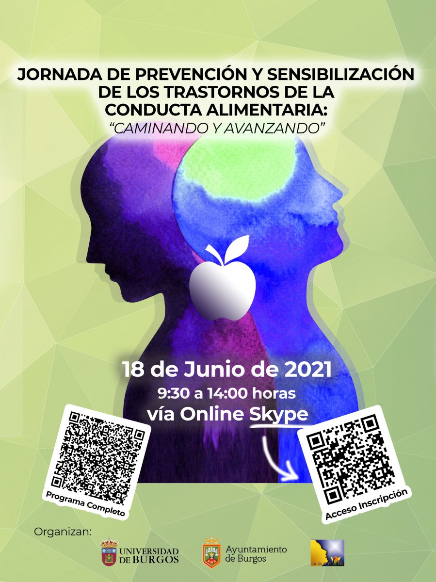 Con motivo de la celebración el día 2 de junio del Día Mundial de Acción por los Trastornos de la Conducta Alimentaria (TCA), y del 25 aniversario de la Asociación de Familiares de Enfermos de Anorexia y Bulimia de Burgos (ADEFAB), la Facultad de Ciencias de la Salud de la Universidad de Burgos, en colaboración con el Ayuntamiento de Burgos y la Asociación ADEFAB, organiza el próximo viernes, 18 de junio a partir de las 9:30 h. y en formato online, la Jornada de Prevención y Sensibilización de los Trastornos de la Conducta Alimentaria, con el lema “Caminando y Avanzando”.