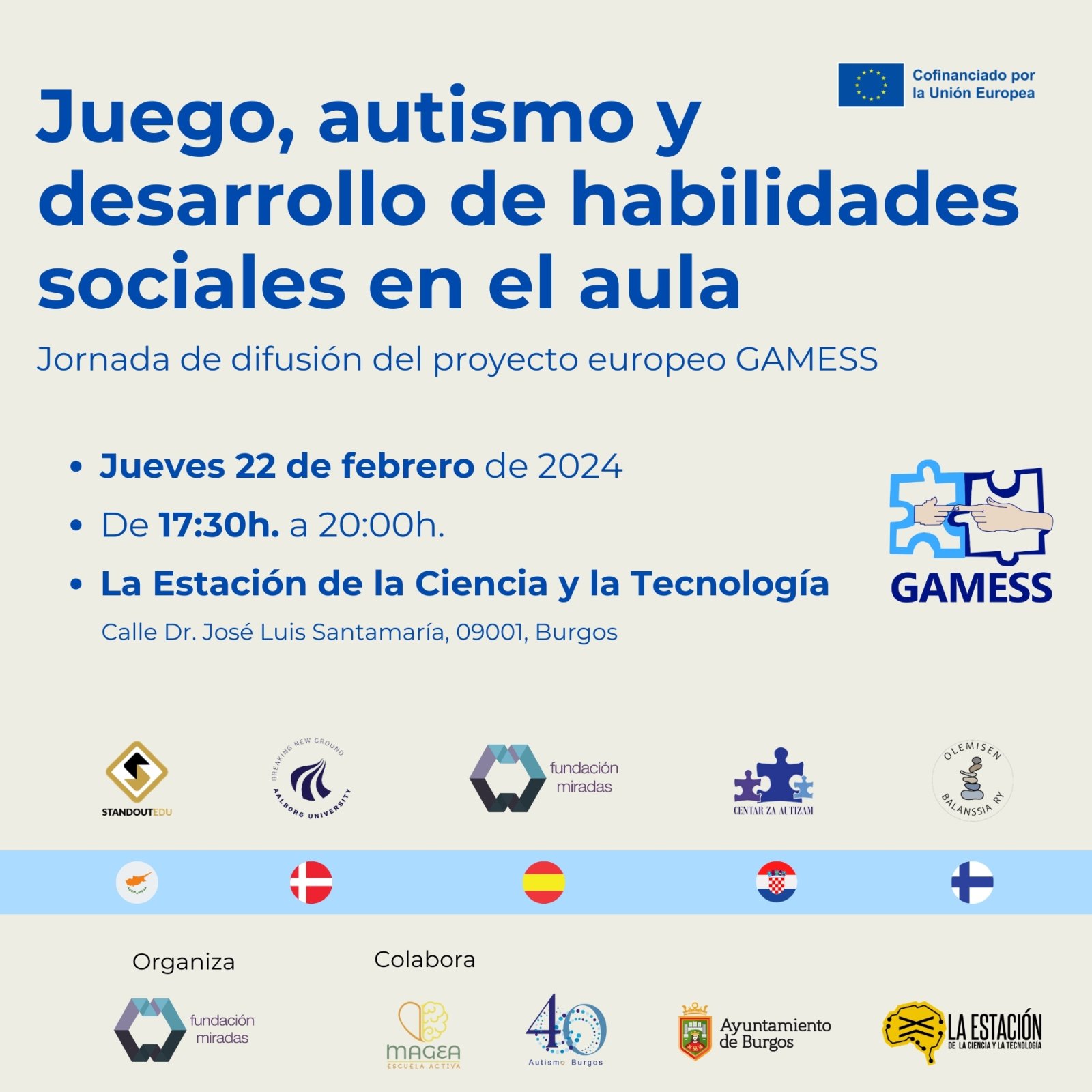 El proyecto europeo GAMESS, desarrollado por Fundación Miradas en colaboración con instituciones de Dinamarca, Croacia, Finlandia y Chipre, tiene como objetivo principal la creación de juegos que promuevan el desarrollo de niños y niñas de primaria con Trastorno del Espectro Autista (TEA), así como de sus compañeros neurotípicos. Asimismo, se ha proporcionado formación al profesorado para el uso de estos recursos en el aula, fomentando la inclusión y el aprendizaje colaborativo.