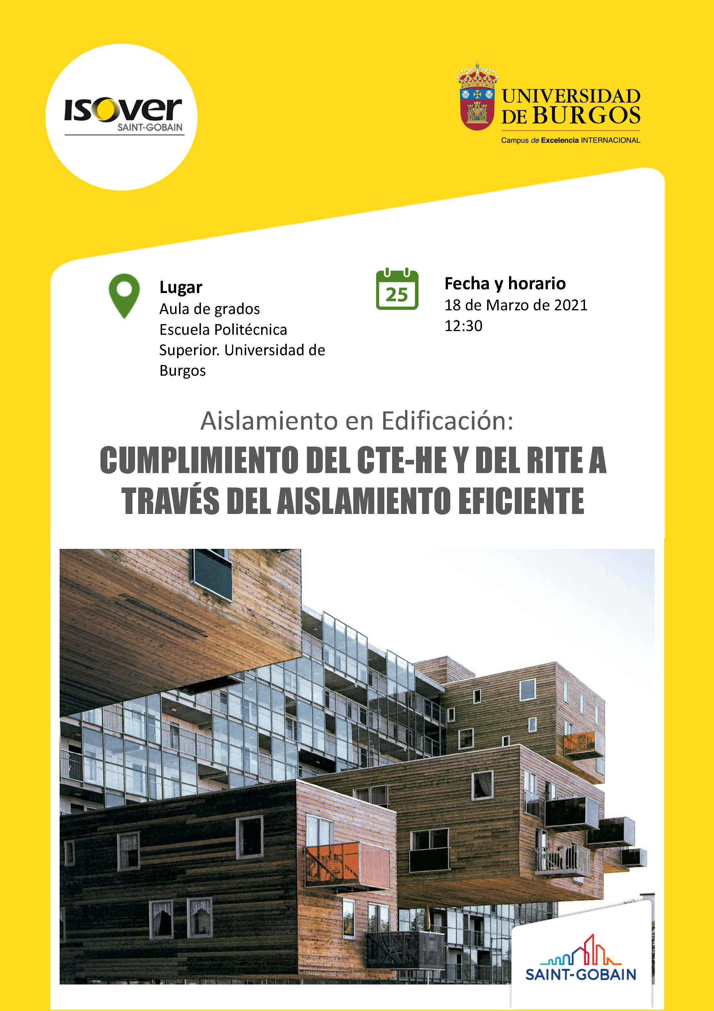 El Departamento de Construcciones Arquitectónicas e I.C.T. de la UBU, en colaboración con SAINT-GOBAIN ISOVER IBÉRICA, organiza la Jornada Técnica “Cumplimiento del CTE-HE y del RITE a través del aislamiento eficiente”