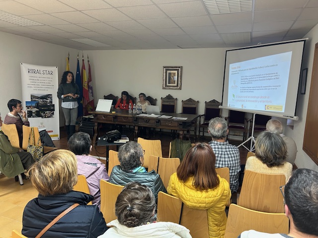 El acto, celebrado en el salón de plenos del Ayuntamiento, reunió a vecinos, representantes institucionales y entidades colaboradoras para compartir los avances de los pilotos VIDI Rural (vivienda), TEJA Star (tejido asociativo) y COPILOT2 (medio forestal y compensación de CO₂).
