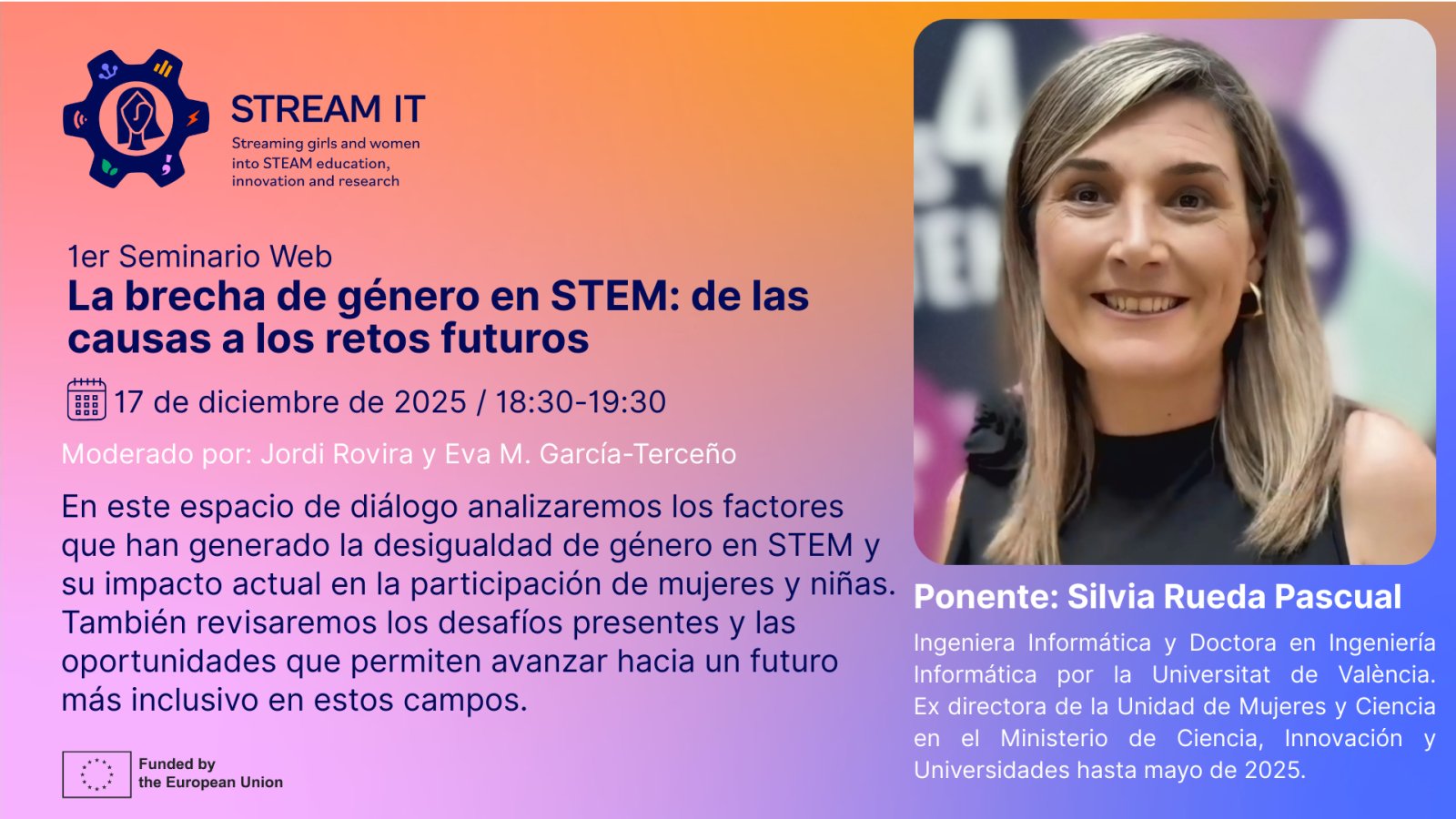 El proyecto STREAM-IT: Streaming girls and women into STEAM education, innovation and research organiza una serie de seminarios web para dialogar sobre igualdad de género en la educación, la investigación y la innovación en disciplinas STEM en español.