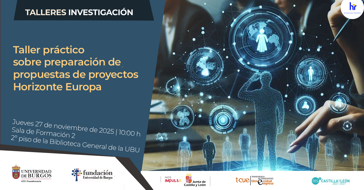 La Oficina de proyectos internacionales (EUBU-OTC) de la UBU organiza el próximo 27 de noviembre de 2025 una nueva edición del taller práctico de preparación de propuestas para el programa Horizon Europe, destinado al personal investigador que quiera profundizar en los aspectos claves de cara a la preparación de una propuesta competitiva.