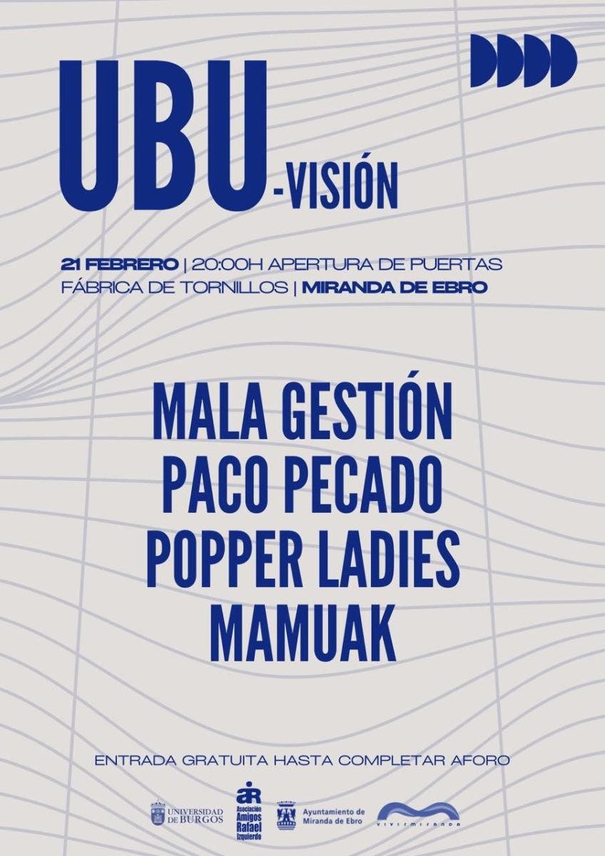 El 21 de febrero, La Fábrica de Tornillos acogerá la segunda edición del festival UBUVISIÓN, una nueva apuesta cultural fruto de la colaboración entre la Universidad de Burgos y la Asociación Rafael Izquierdo (Ebrovisión).