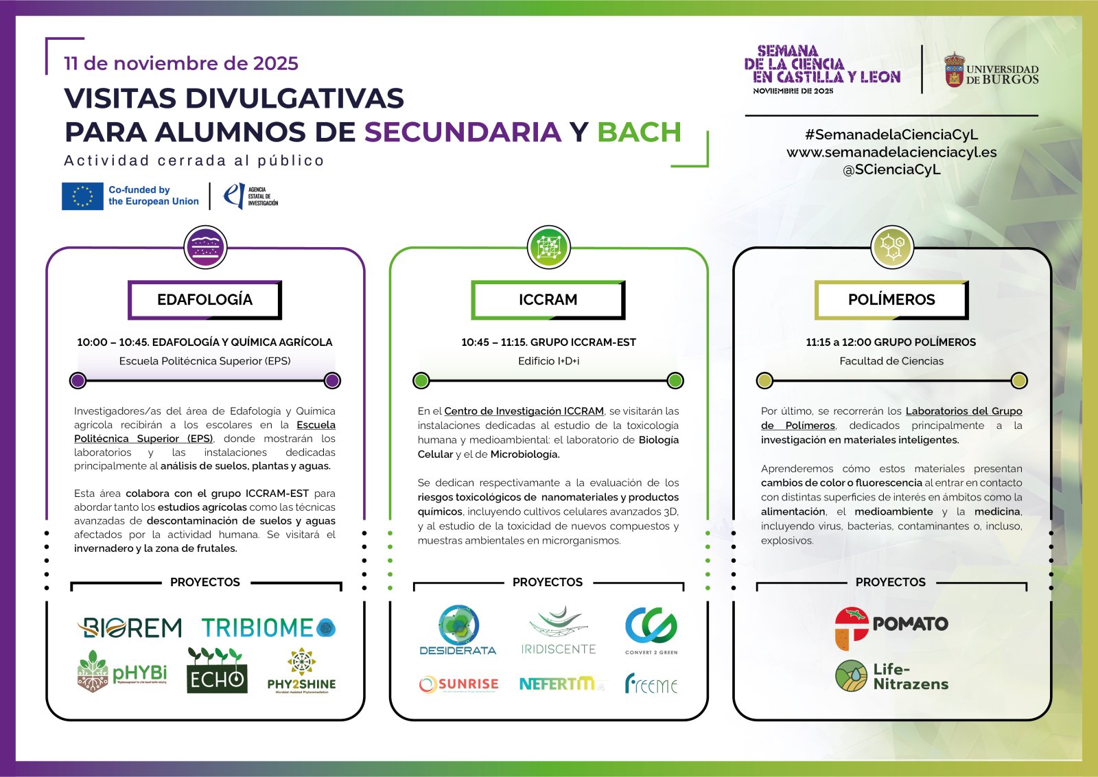 El centro de investigación ICCRAM organiza, en colaboración con el grupo Polímeros y el área de Edafología y Química Agrícola de la Universidad de Burgos, una jornada de divulgación científica para un grupo de 30 estudiantes de secundaria y bachillerato del IES Tierra de Alvargonzález, de Quintanar de la Sierra. Con motivo de la Semana de la Ciencia de Castilla y León, el alumnado se desplazará hasta Burgos para conocer algunas de las investigaciones que se realizan en la UBU, en el marco de diferentes proyectos europeos y nacionales.