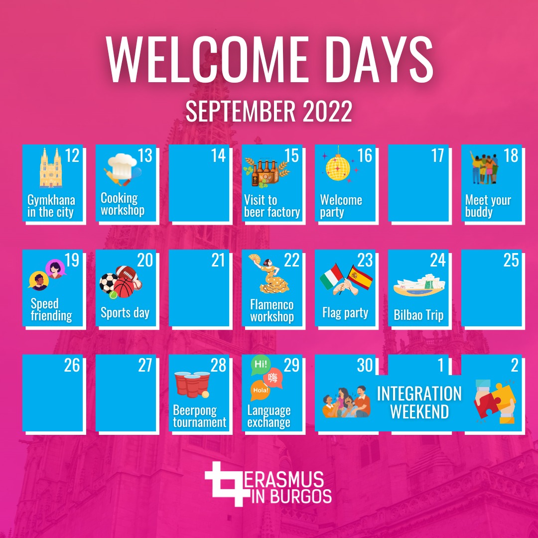 Con motivo de la llegada de los estudiantes internacionales, Erasmus Students Association - UBU ha programado un calendario con diferentes actividades con el fin de promover su integración y hacer que su experiencia y estancia en Burgos sea inolvidable