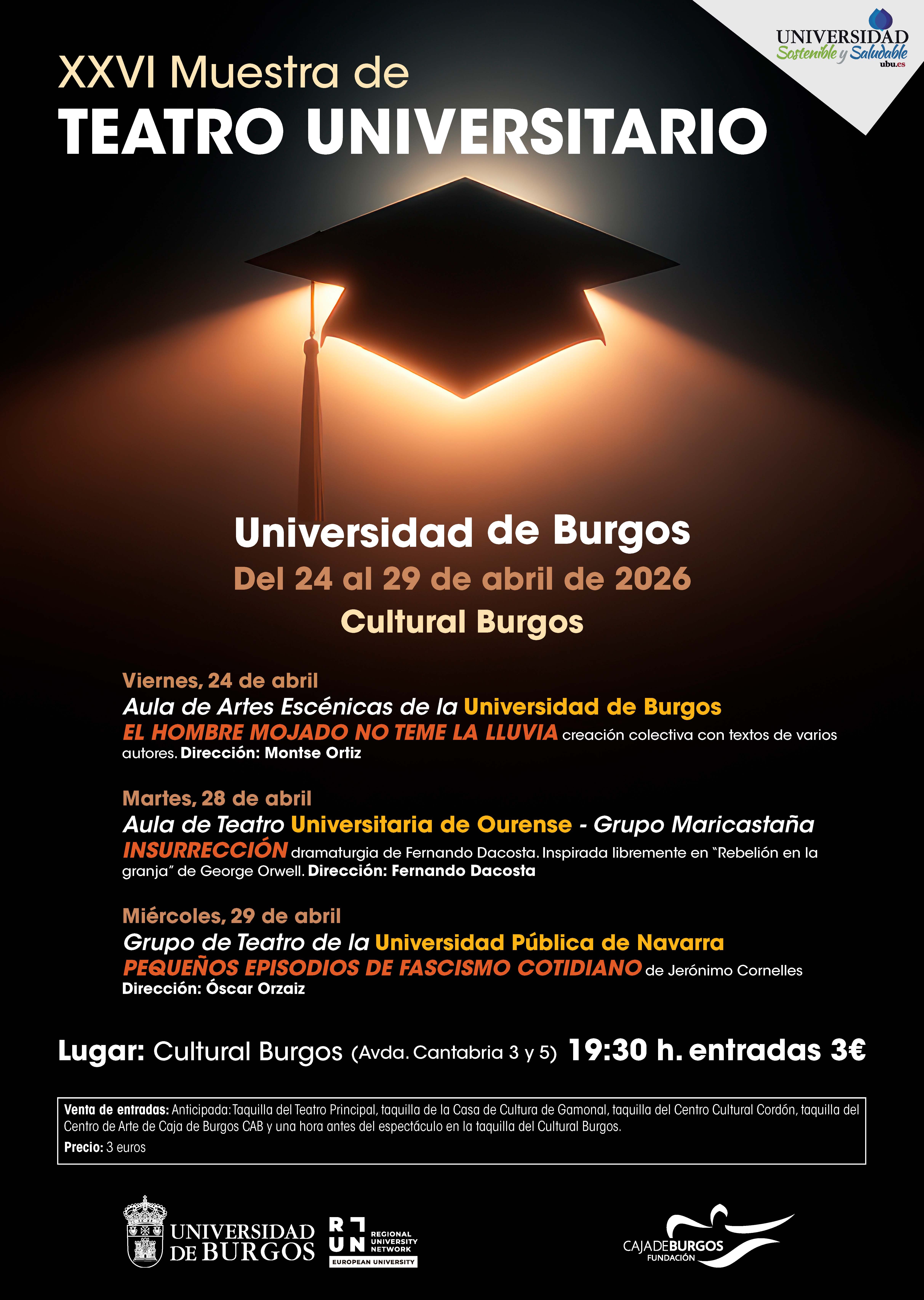 XXVI Muestra de Teatro Universitario. El Aula de Artes Escénicas de la Universidad de Burgos presenta: "El hombre mojado no teme la lluvia"