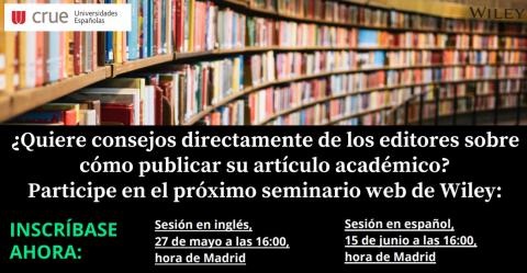 - Sesión en español: martes 15 de junio a las 16 horas, Seminario Web para ayudarle a aumentar sus posibilidades de ser publicado en una revista académica: 15 de junio de 2021, 4pm (CET) (1 hora) - español