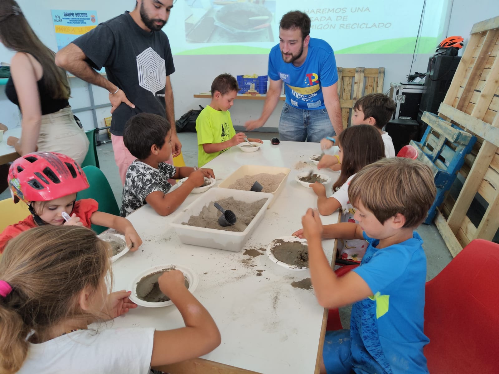 El taller fue realizado para todas las edades adaptando las actividades; a los más pequeños aprendieron los conceptos básicos de la construcción y la importancia del reciclaje, mientras que los mayores profundizaron en los procesos de fabricación del hormigón y las ventajas de utilizar materiales reciclados. La actividad estuvo guiada por integrantes del grupo de investigación SUCONS y con la colaboración de Yara Arnaiz Martin y otros compañeros de la asociación, que explicaron y guiaron a los niños en las diferentes fases del taller.