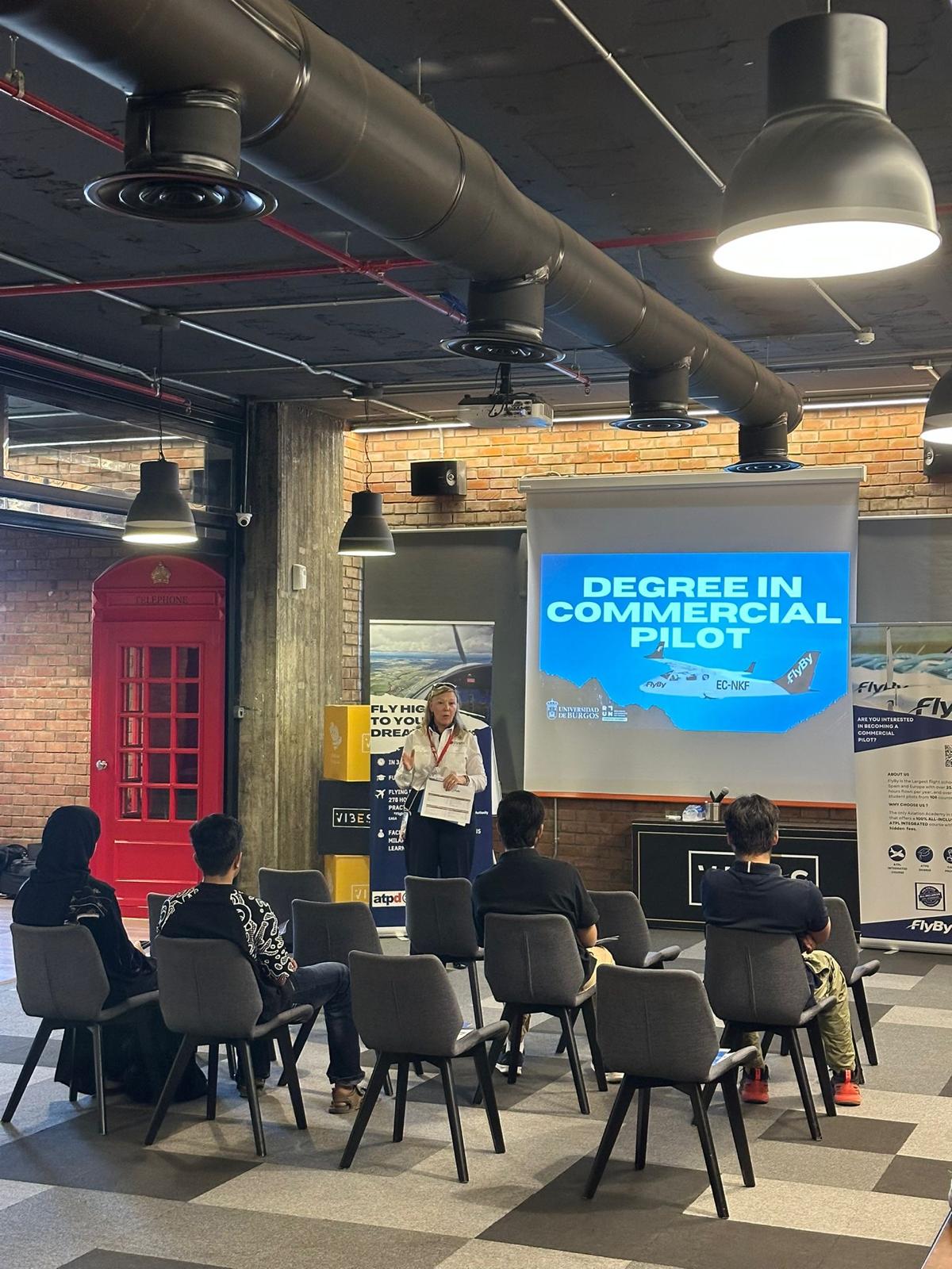 Durante el viaje, el equipo administrativo tuvo la oportunidad de participar en diversas conferencias y reuniones con futuros nuevos estudiantes. En Mascate, también se reunieron con el representante de la Embajada de España en Omán, D. Javier de Istúriz. Estas conferencias pusieron de relieve la excelencia académica y la orientación internacional de la titulación de piloto comercial y de la Universidad de Burgos.