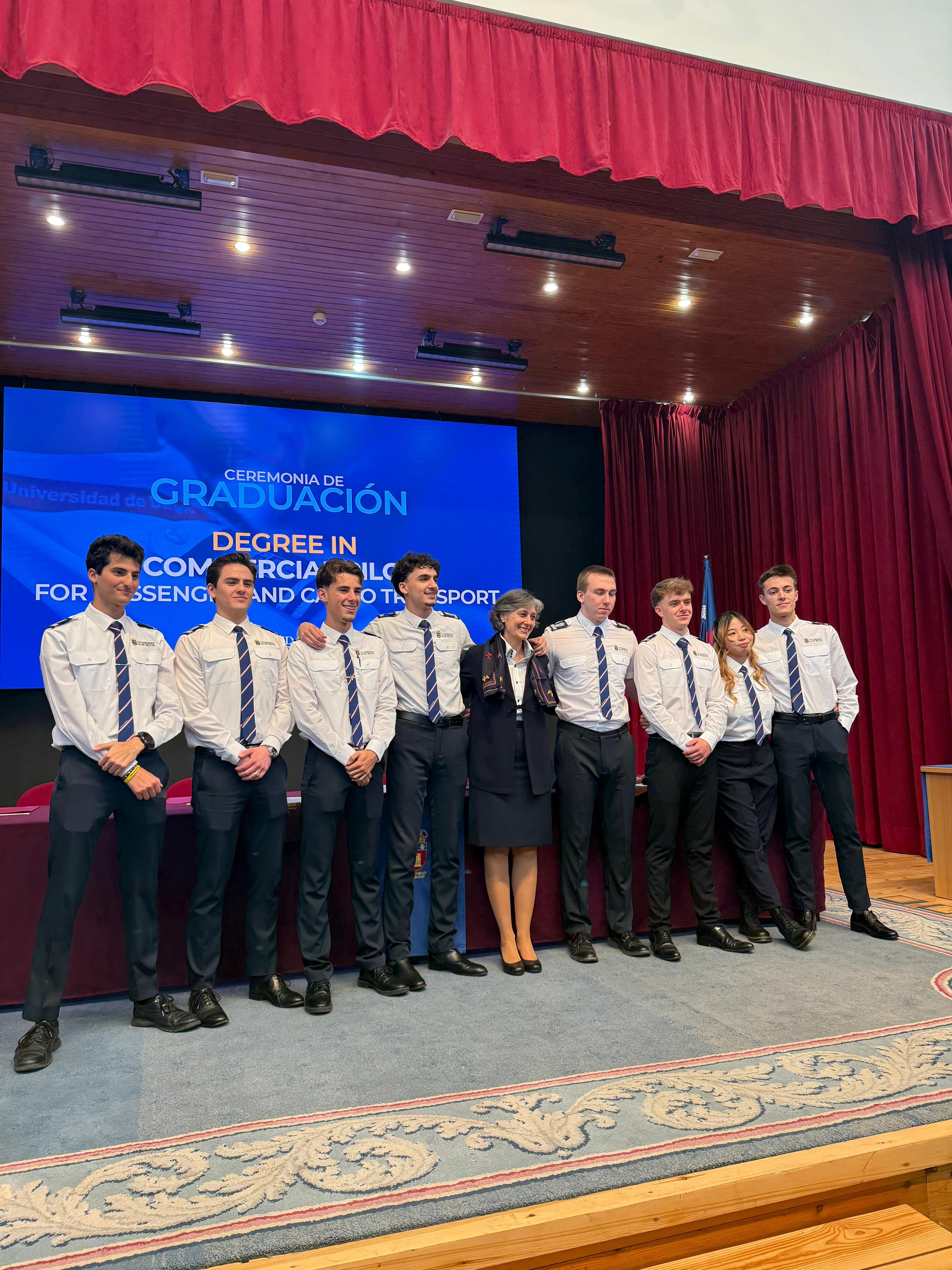 Los ocho alumnos de la primera promoción en el Grado de Piloto Comercial para Transporte de Personas y Mercancías de la Universidad de Burgos (UBU), se han graduado este 19 de mayo de 2025. Todos ellos tienen diferentes nacionalidades, provenientes de España, Rusia, Filipinas, Puerto Rico, Francia y el Líbano. Hace tres años iniciaron sus estudios en el mundo de la aviación, inaugurando este Grado, y después de mucho esfuerzo y horas de vuelo, finalizan su etapa académica y empiezan su etapa laboral.