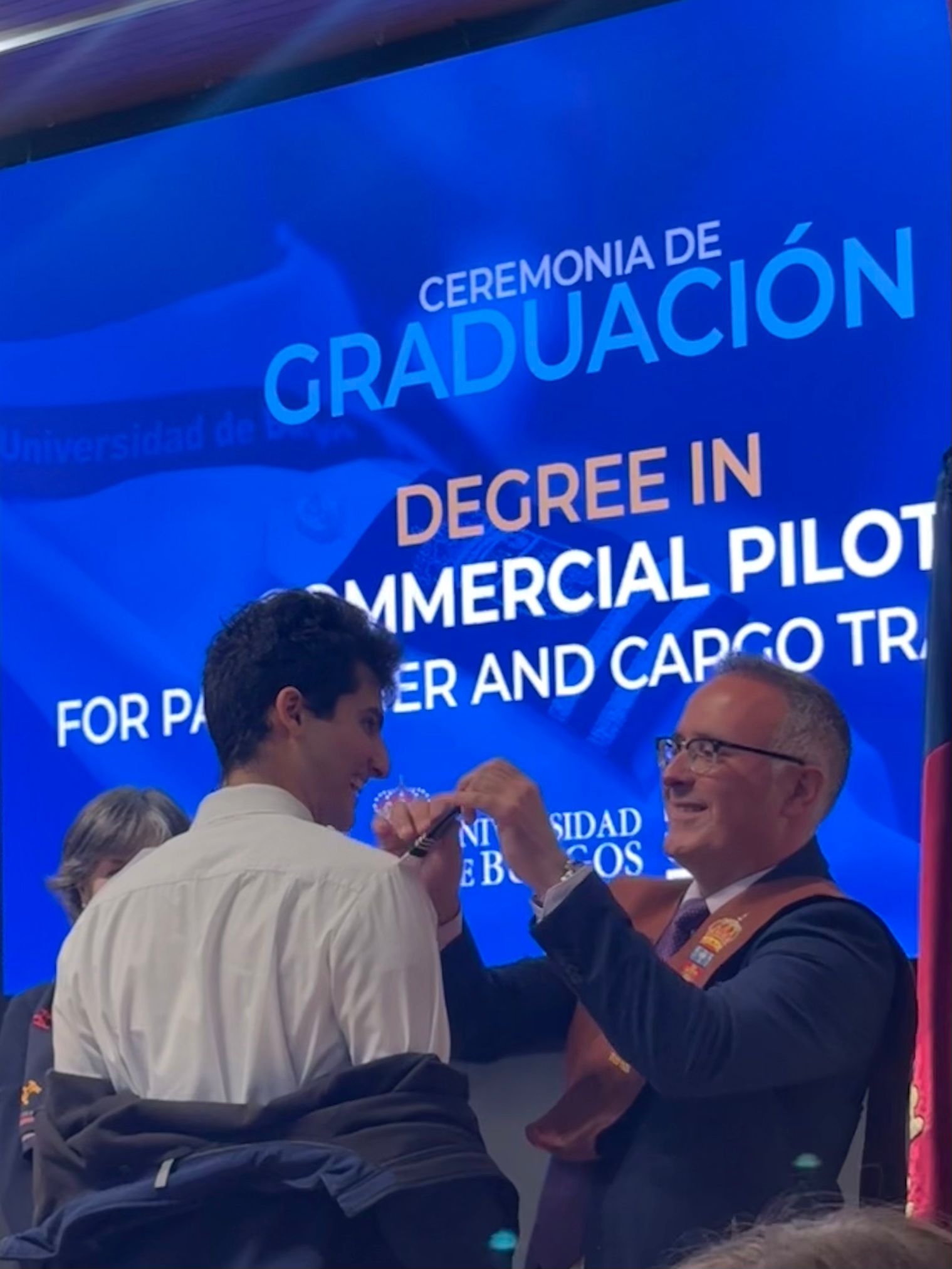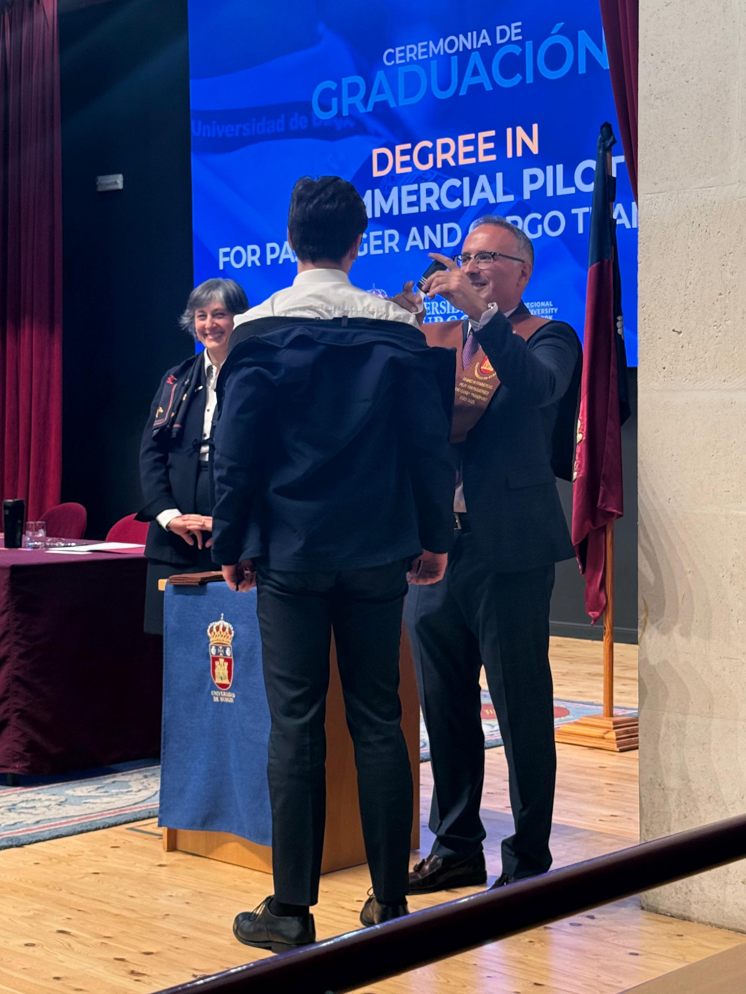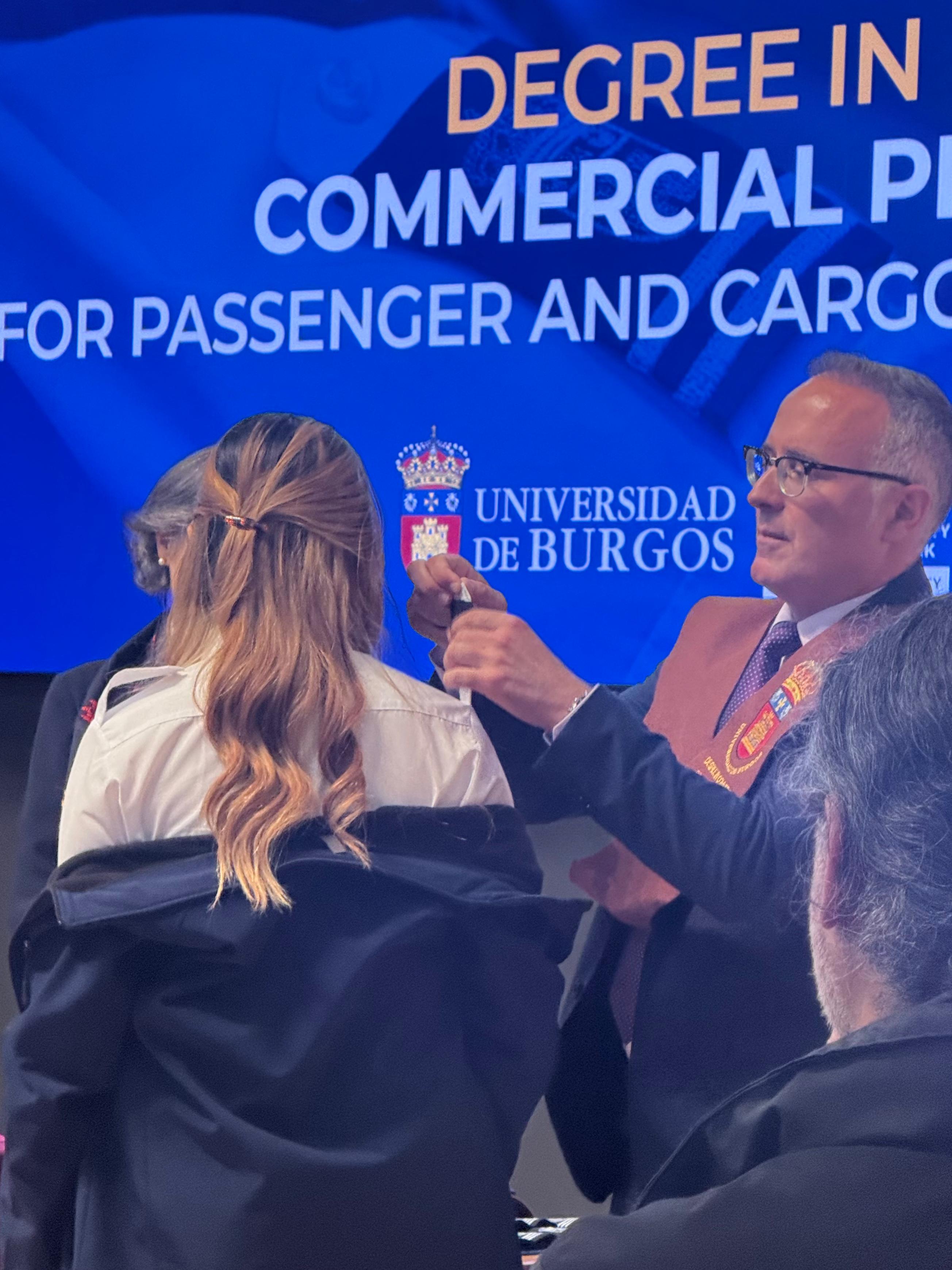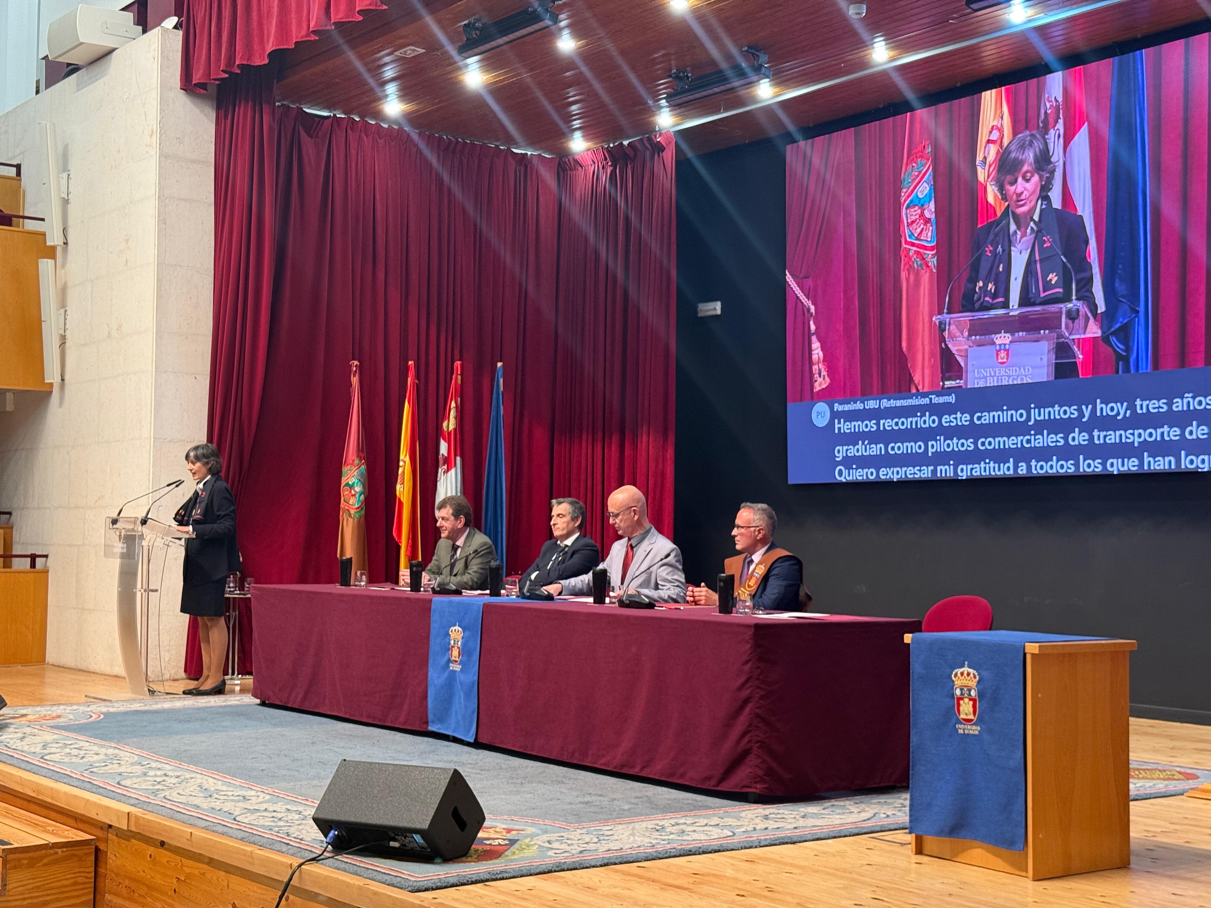 Durante el acto se puso en valor la gran formación que ofrece la Universidad de Burgos y el crecimiento de este Grado, en el que cada año las matriculaciones crecen exponencial e internacionalmente, debido a que el mundo de la aviación está en pleno auge, tal y como recalcó en su discurso el padrino José Antonio de la Plaza. Además, como profesor suyo, dedicó unas emotivas palabras a los graduados, resaltando las virtudes personales de cada uno de ellos. Recordó también que: “Ser un piloto no es solo una profesión, es una responsabilidad y un privilegio”.
