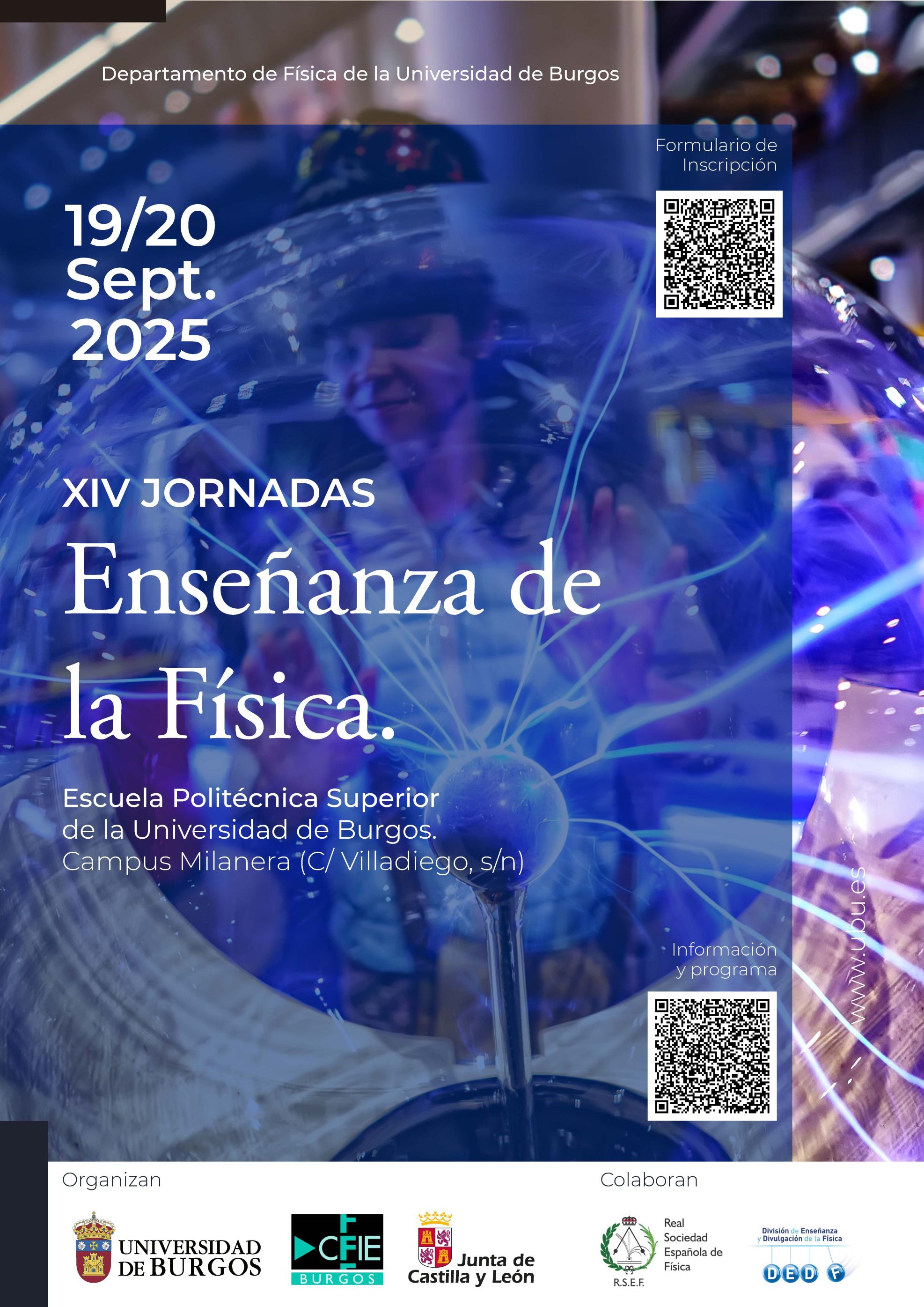 La División de Enseñanza y Divulgación de la Física (DEDF) en colaboración con la Universidad de Burgos organizan unas nuevas jornadas que está previsto realizar en los días 19 y 20 de septiembre de 2025.