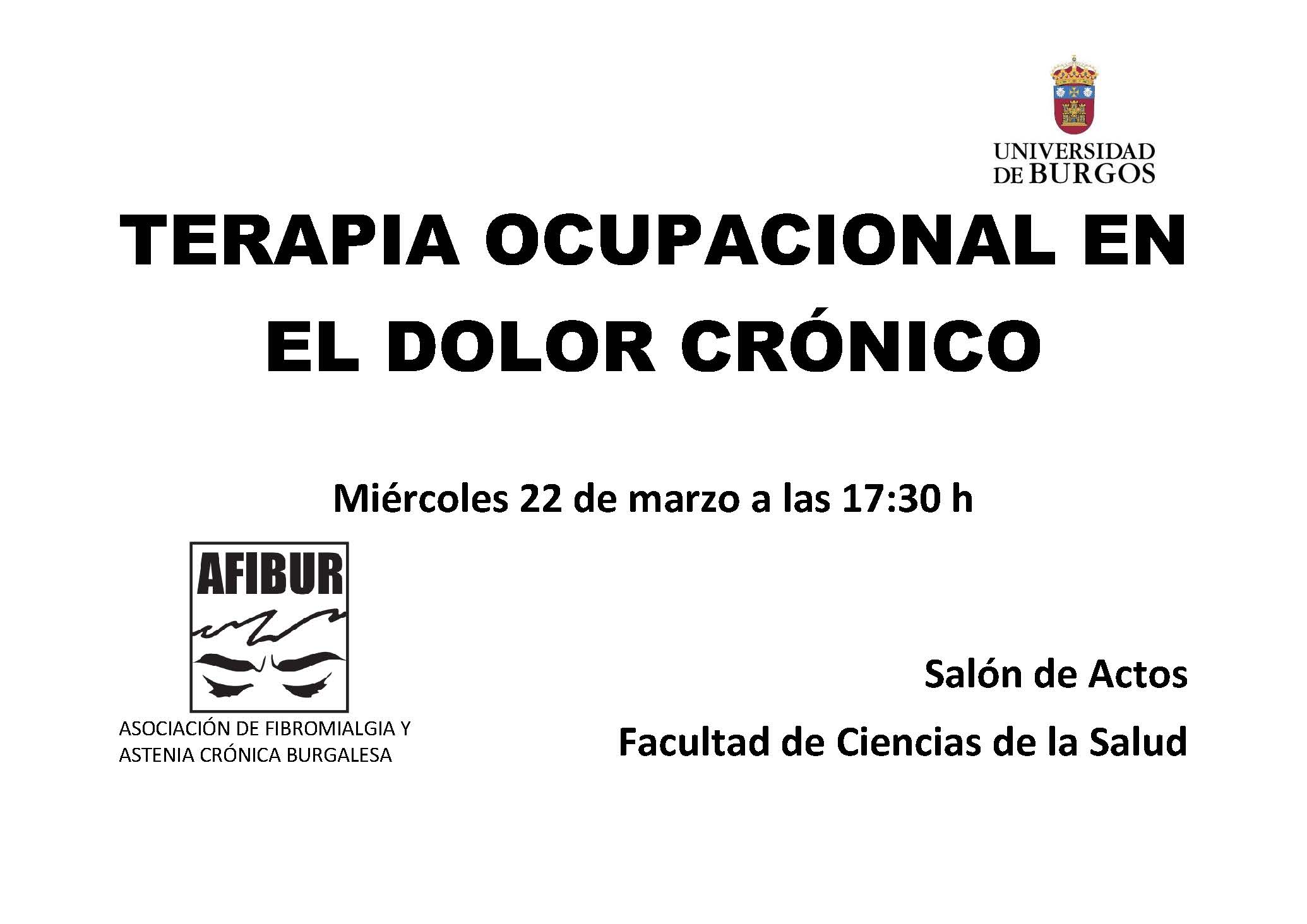 Charla "Terapia Ocupacional en el dolor crónico" Miércoles 22 de marzo a las 17:30 horas Lugar : Salón de Actos de la Facultad de Ciencias de la Salud