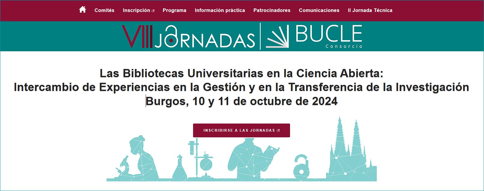 Los días 10 y 11 de octubre tendrán lugar en la Universidad de Burgos las VIII Jornadas BUCLE, bajo el título “Las Bibliotecas Universitarias en la Ciencia Abierta: Intercambio de Experiencias en la Gestión y en la Transferencia de la Investigación”.