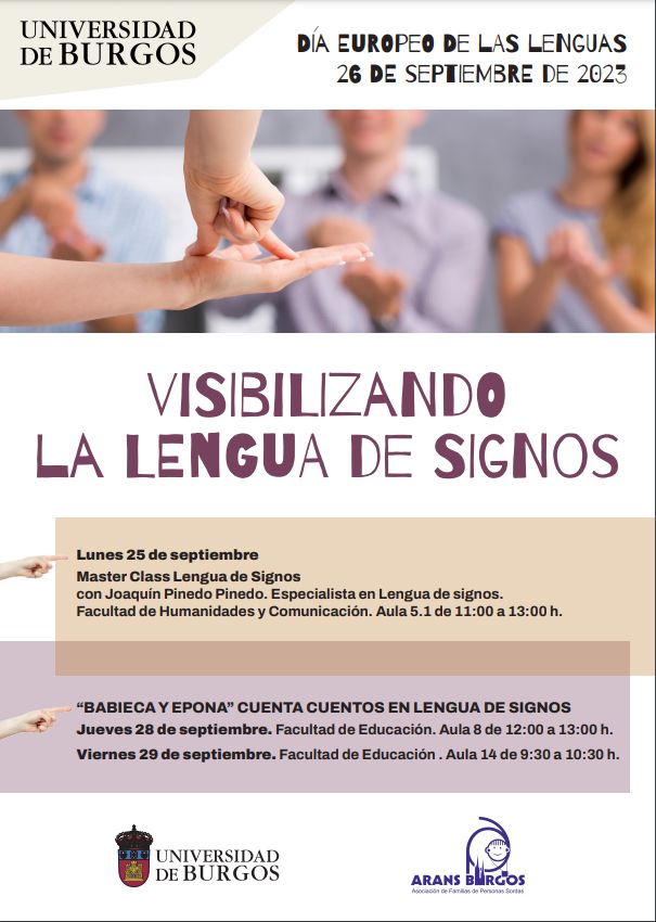 Con motivo de la celebración el día 26 de septiembre del Día Europeo de las Lenguas, la Universidad de Burgos y la Asociación Aransbur han organizado un progrma de actividades con el objetivo de visibilizar la Lengua de signos, una lengua minoritaria.