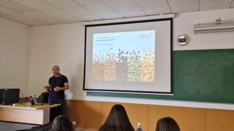 Los alumnos de 3er curso del Grado en Ingeniería Agroalimentaria y del Medio Rural y del Doble Grado Ingeniería Agroalimentaria y del Medio Rural e Ingeniería de Organización Industrial, dentro de las actividades prácticas previstas en la asignatura de Cultivos Herbáceos y Leñoso, han asistido a una conferencia sobre “Cultivos herbáceos hortícolas” impartida por Santiago Elena, Elsoms the Seed Specialists.