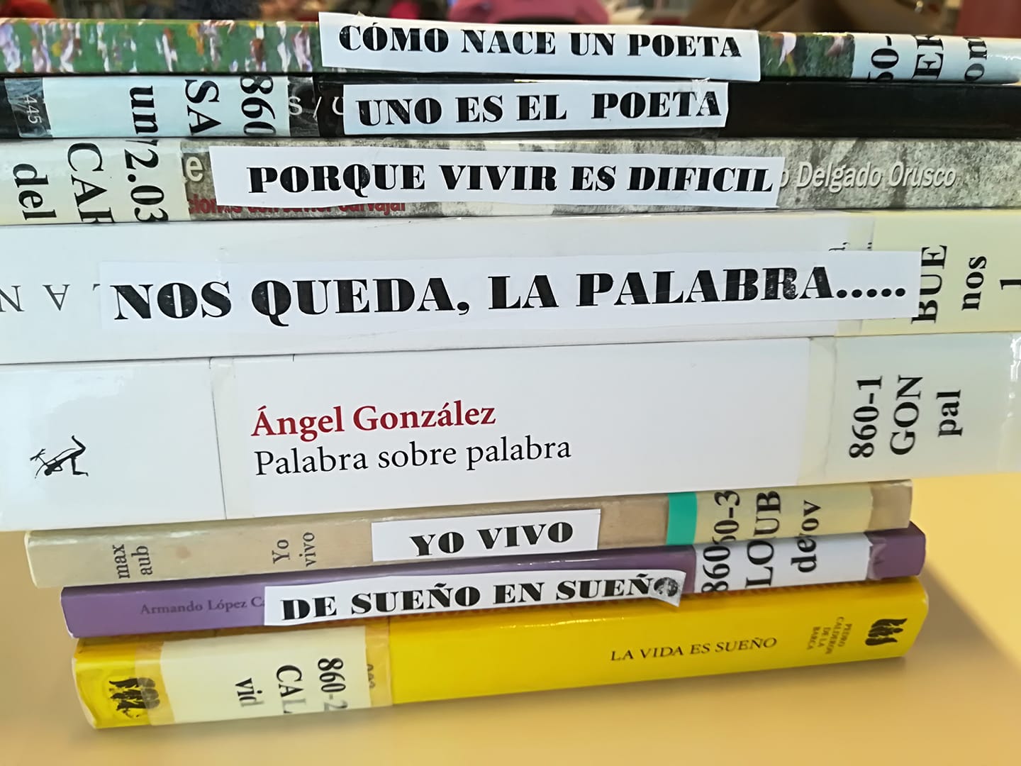 - Construye un poema utilizando los textos de los lomos de los libros
