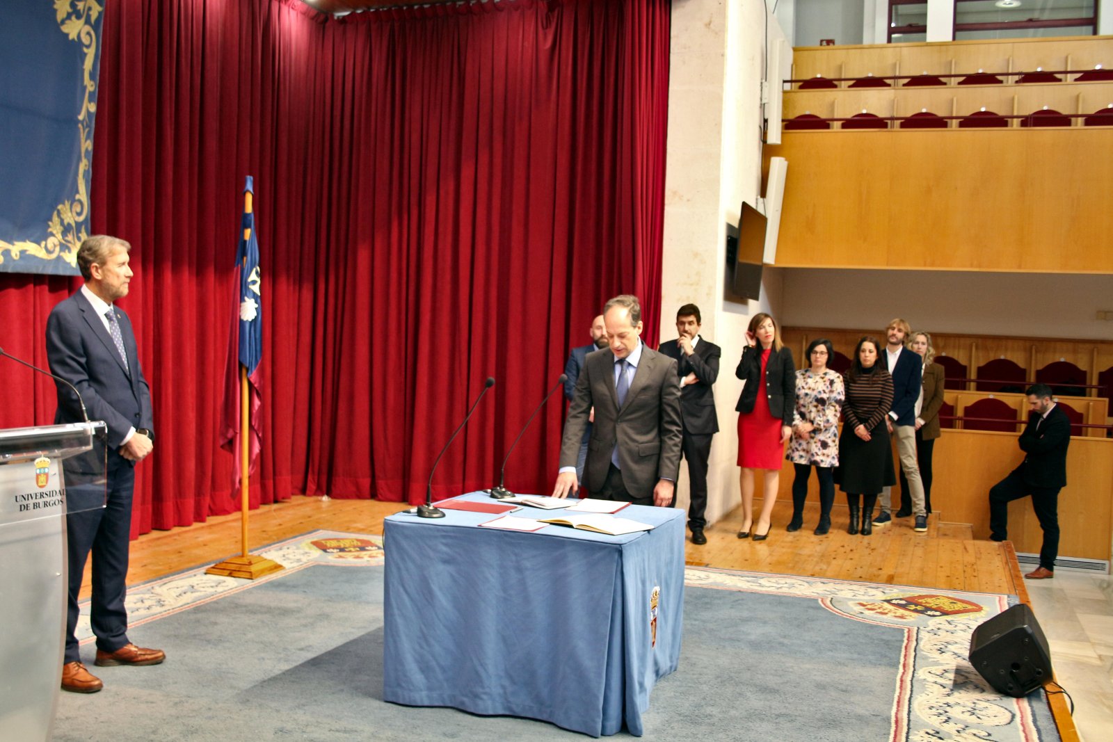 “Hoy es un día muy especial y no es ésta una expresión típica en esta clase de actos. Es realmente un día de orgullo y felicitación por empeñar vuestros esfuerzos en el desarrollo de vuestra carrera profesional, consolidando así la plantilla de una gran institución”. Con estas palabras el rector de la Universidad de Burgos, Manuel Pérez Mateos, inició su alocución dirigida a los 26 catedráticos y catedráticas de universidad y a los 38 profesores y profesoras titulares de universidad que acaban de jurar o prometer sus cargos en el acto de toma de posesión celebrado hoy en el Aula Magna de la UBU.