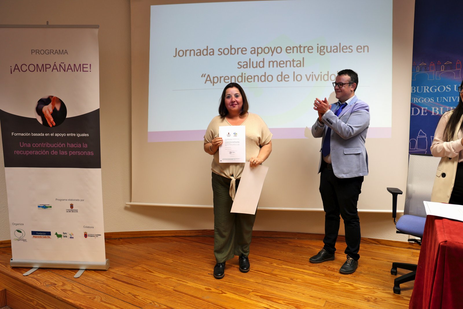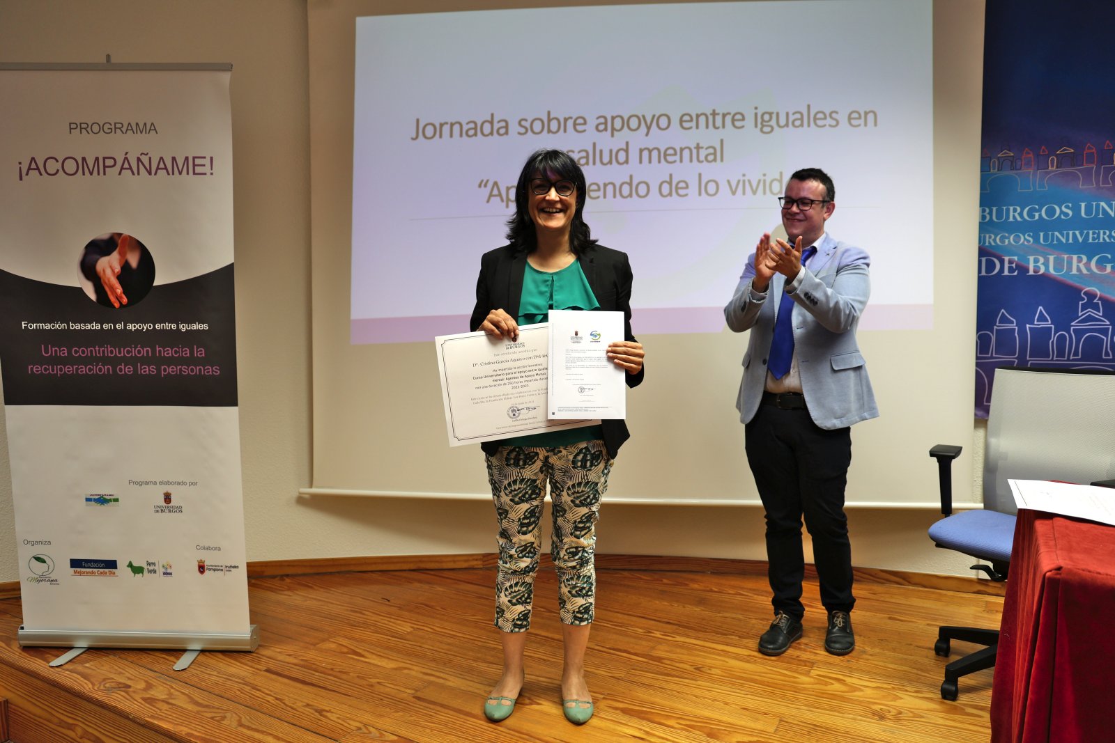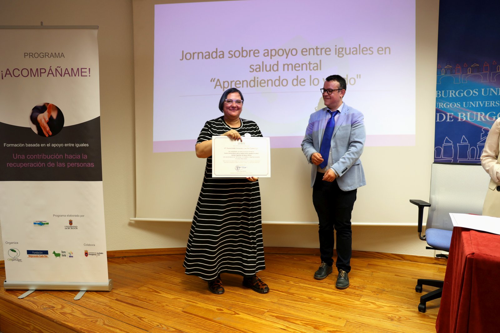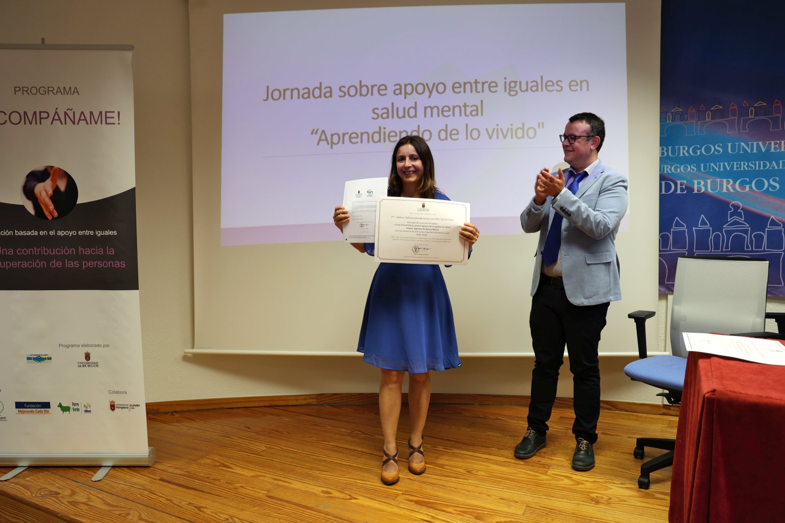 La entrega de diplomas se enmarcó en la Jornada sobre apoyo entre iguales en salud mental “Aprendiendo de lo vivido”, durante la que se presentó el curso y se celebró una mesa redonda que presentó experiencias en primera persona sobre la formación en apoyo entre iguales.