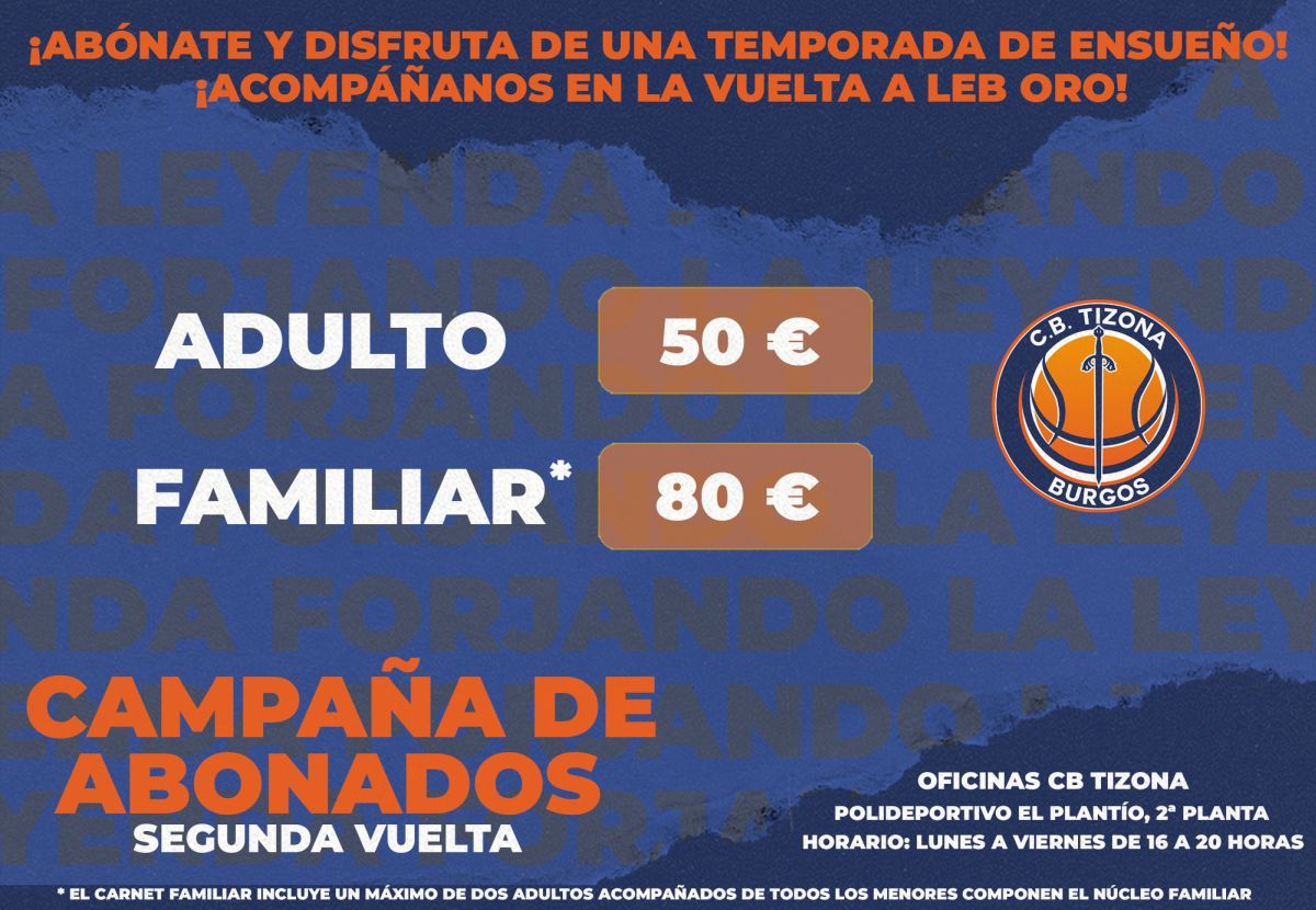 El Club Baloncesto Tizona lanza la campaña de abonados para la segunda vuelta con tan solo dos modalidades de abono que incluyen la segunda vuelta de la temporada regular.