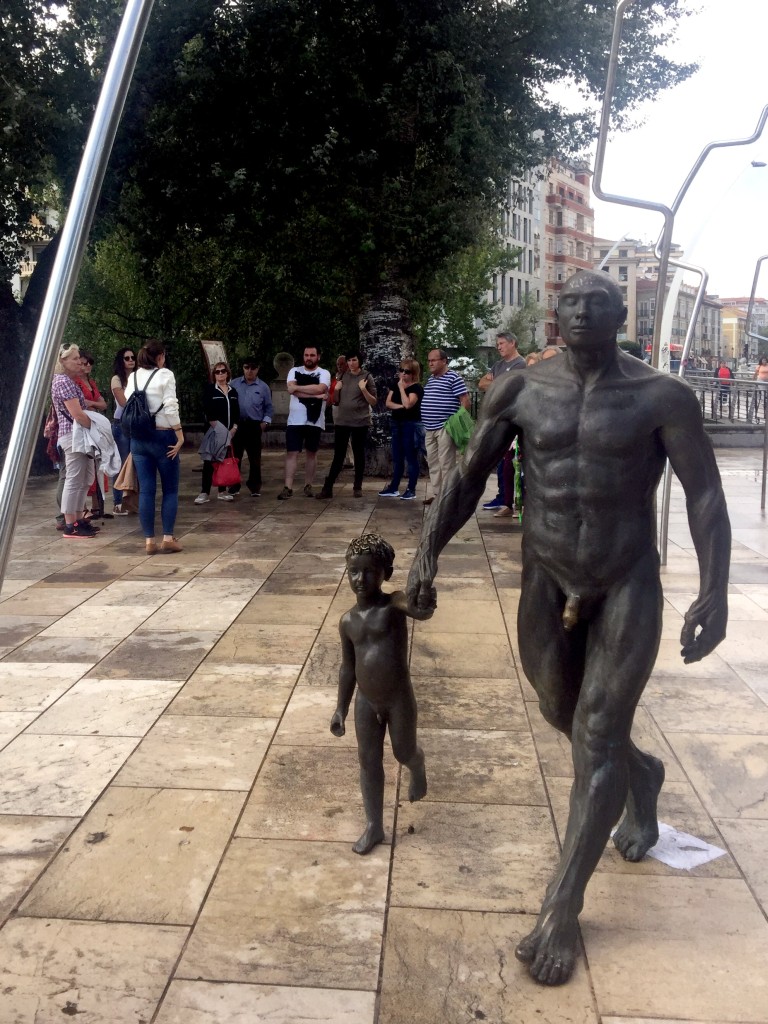 El paseo comenzó en el conjunto escultórico del hombre y el niño instalado en el Paseo de la Evolución Humana que sirvió como pretexto para reflexionar y hacer una crítica sobre la invisibilidad de la mujer a lo largo de la Historia, se habló también de Patriarcado, de violencia simbólica y de la necesidad de reescribir la Historia sin androcentrismo.