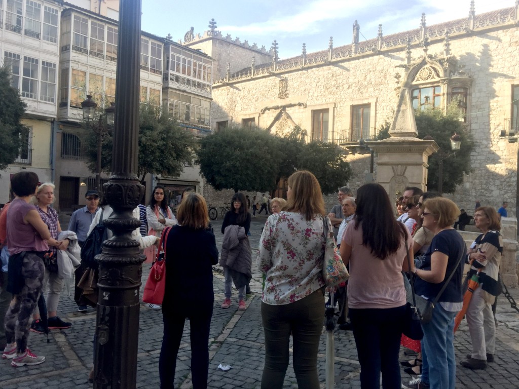 El recorrido continuó en la Plaza de Santa Teresa donde, como no podía ser otro modo, se abordó la figura de la religiosa y de otra mujer valorada en su tiempo y en la actualidad: la reina católica Isabel I. Seguidamente, se desplazaron a la plaza de San Juan y recordaron a Constanza de Borgoña, la responsable de traer a San Lesmes a Burgos.