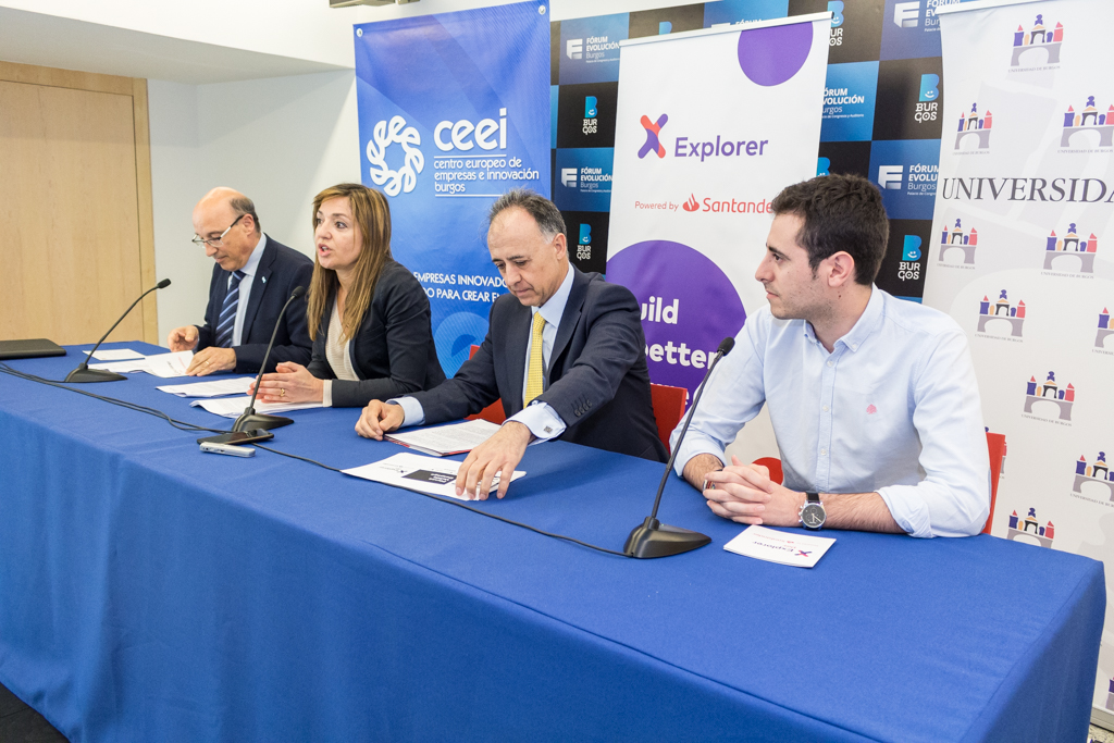 Este VIII Encuentro Nacional del programa Explorer “Jóvenes con ideas”, que promueve Banco Santander, a través de Santander Universidades, y coordina el Centro Internacional Santander Emprendimiento (CISE), cuenta con el apoyo del Ayuntamiento de Burgos, a través de su Centro Europeo de Empresas e Innovación (CEEI), y de la Universidad de Burgos. Se trata de un macrosistema de emprendimiento joven para jóvenes con talento que aterrizarán en el Fórum Evolución, según han indicado el vicerrector de Empleabilidad y Empresa de la Universidad de Burgos, José Luis Peña, la concejala de Innovación del Ayuntamiento de Burgos y presidenta del CEEI, Carolina Blasco Delgado, el director del CISE, (Centro Internacional Santander Emprendimiento), Federico Gutiérrez Solana, y Diego Martínez Vélez, participante del Explorer Burgos 2017.