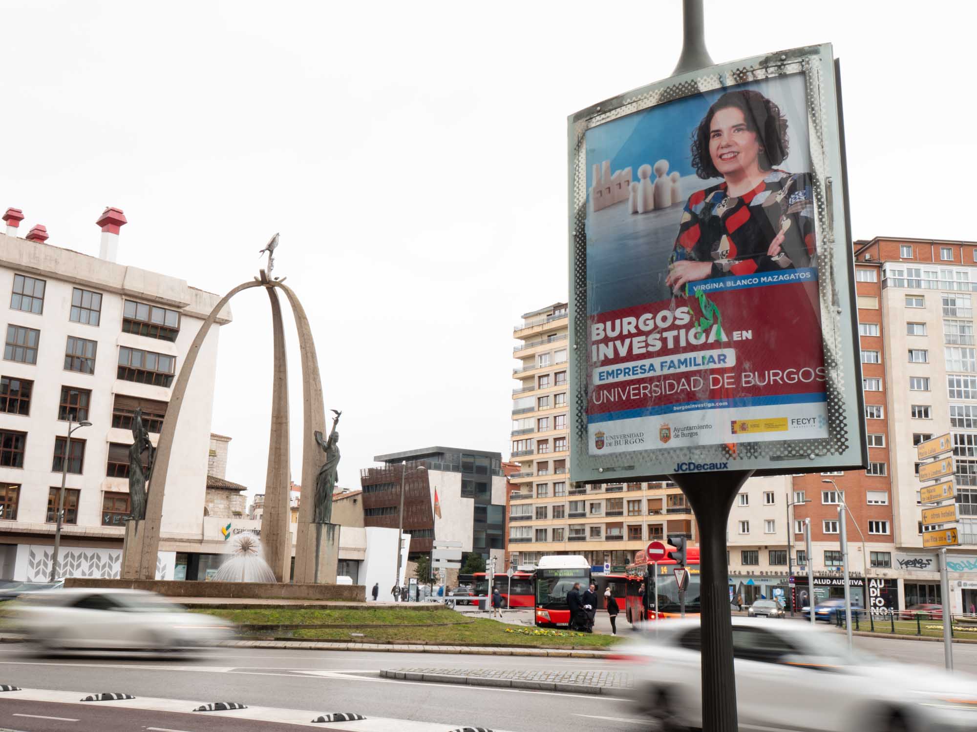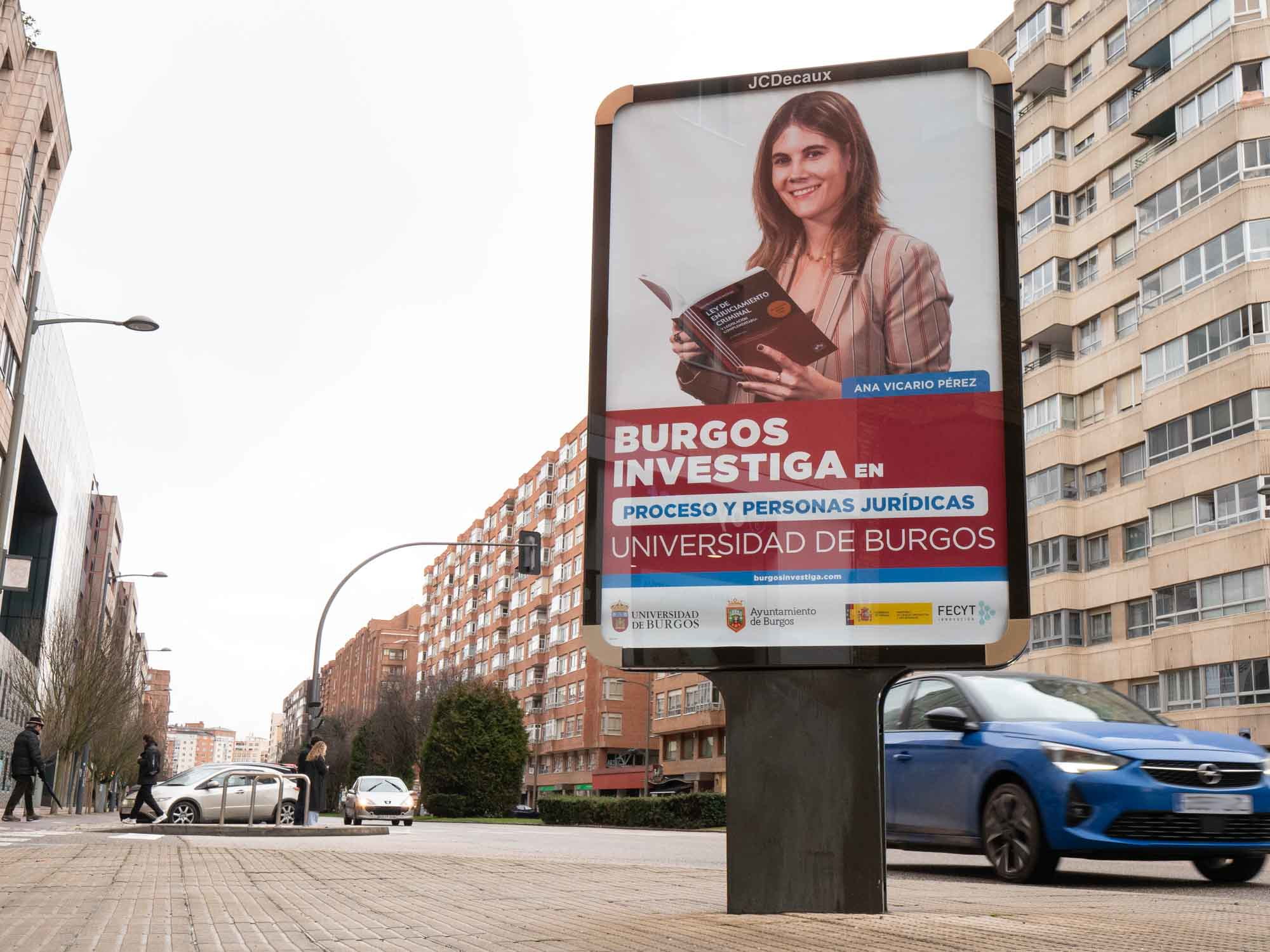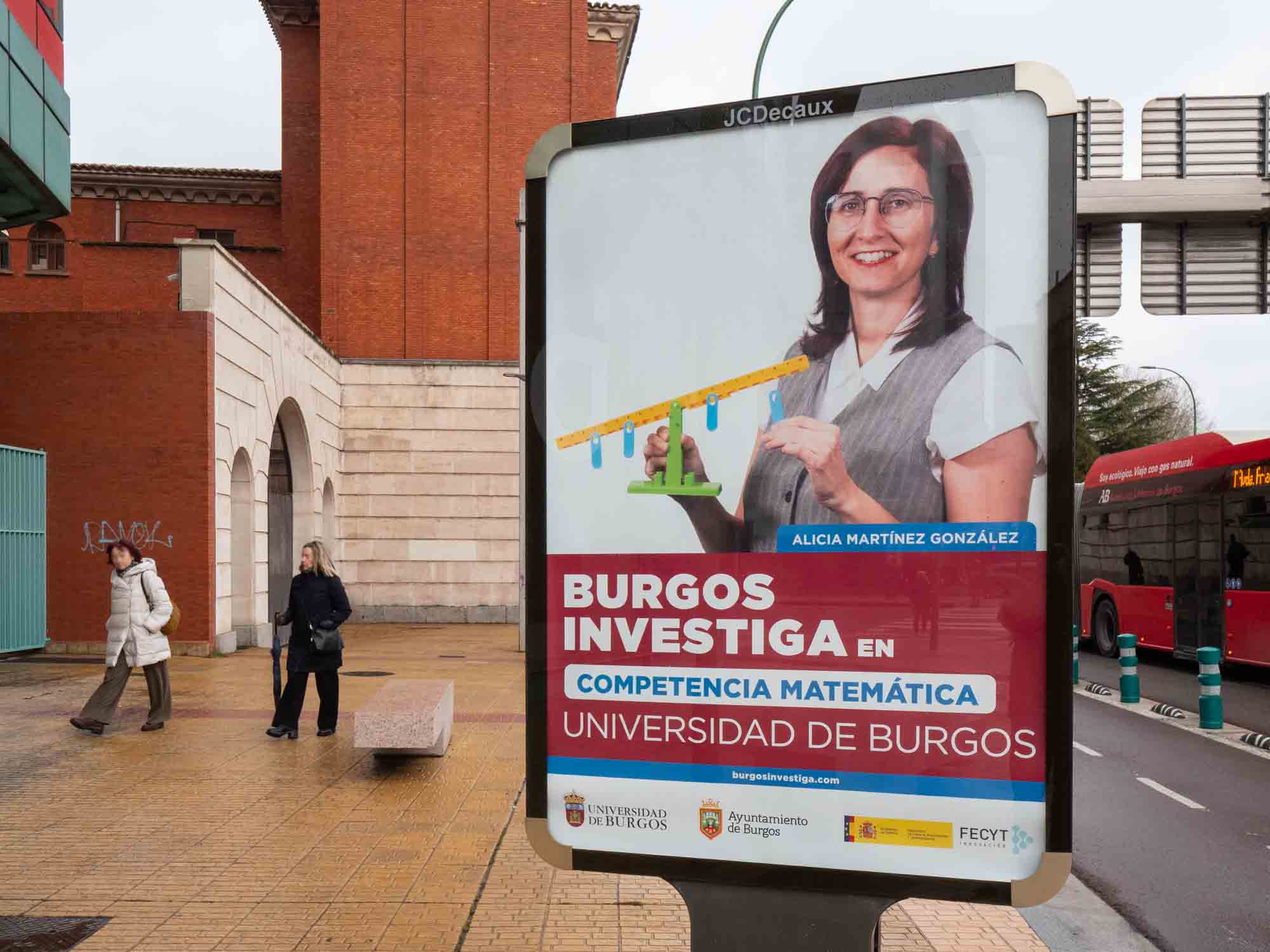 Vuelve Burgos Investiga, la campaña de divulgación de la Universidad de Burgos para conectar a la ciudadanía con el personal investigador a través de sus retratos y ámbitos de estudio en las marquesinas de la ciudad. Como en ocasiones anteriores, 16 especialistas en economía, química, derecho, historia, biomedicina, neurociencia, tecnología de los alimentos, industria, inteligencia artificial, psicología, nutrición, matemáticas o física aplicada estarán presentes en las calles durante las próximas semanas en 32 soportes publicitarios cedidos por el Ayuntamiento de Burgos