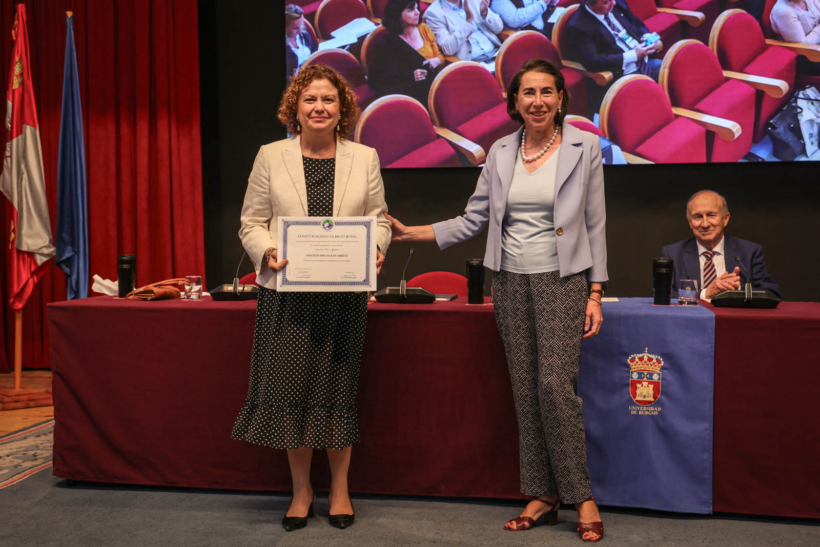 La presidenta también hizo entrega a María Emilia Adán García, decana del Colegio de Registradores de España, de un diploma en reconocimiento al apoyo de esta institución al sector agrario y su contribución y apoyo a estudios de investigaciones sobre Derecho Rural.