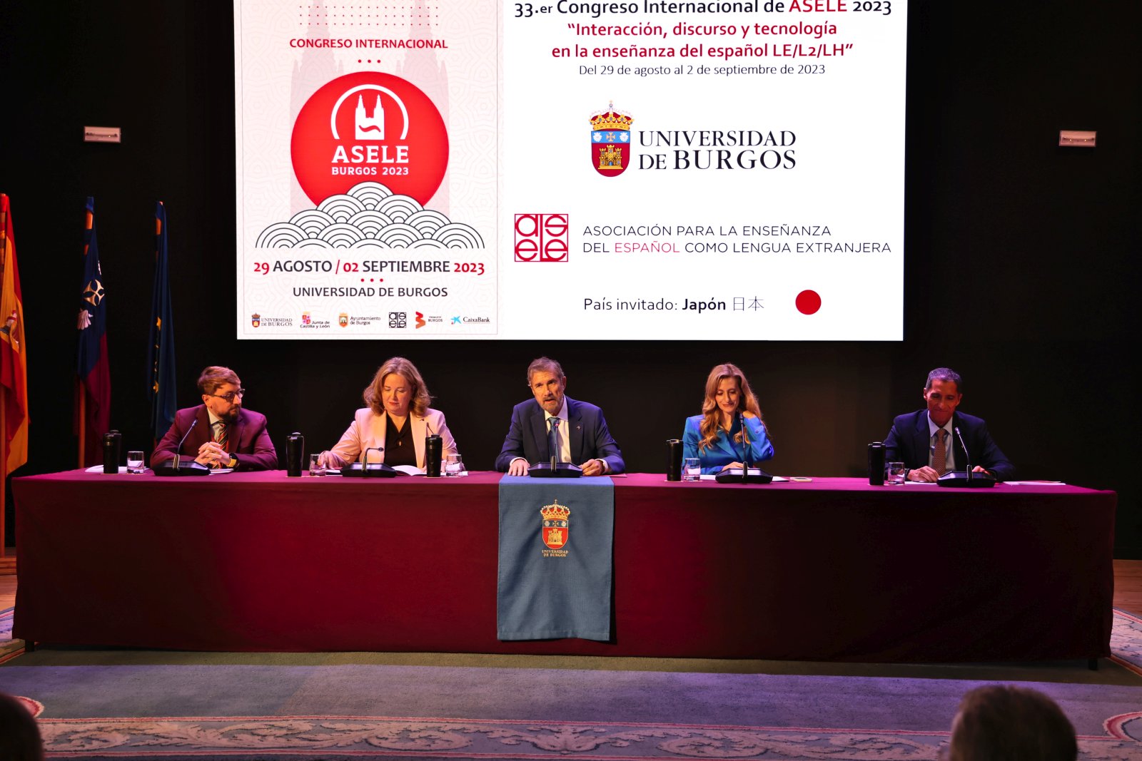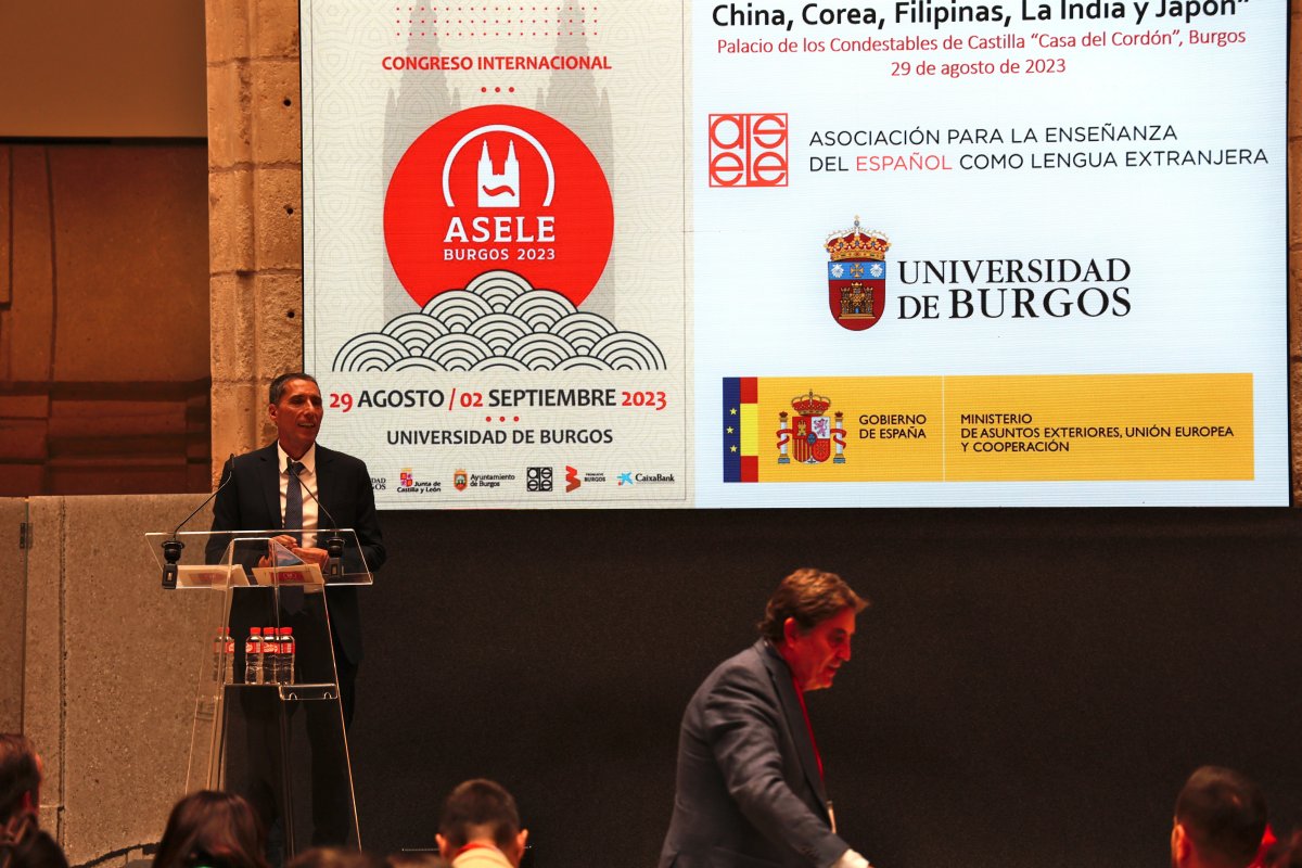 “Epicentro mundial de la enseñanza de la lengua” es como ha definido Javier Muñoz-Basols, presidente de ASELE, el congreso inaugurado esta mañana en el Paraninfo de la Universidad de Burgos. El 33º Congreso Internacional de ASELE (Asociación para la Enseñanza del Español como Lengua Extranjera) reúne en Burgos, del 29 de agosto al 2 de septiembre, a más de 400 especialistas de 40 países y 4 continentes, con Japón como país invitado.