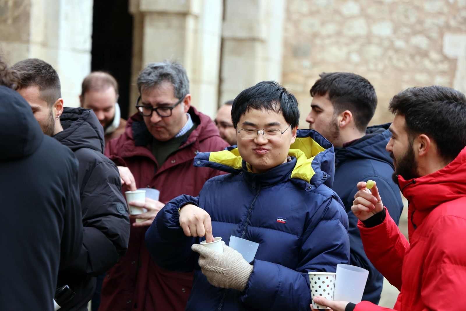 Estos mismos productos conformaron una cesta que se sorteó entre los asistentes, que se acercaron hasta el Patio Romeros para tomar las tradiconales uvas, aprovechando las 12 campanadas del mediodía.