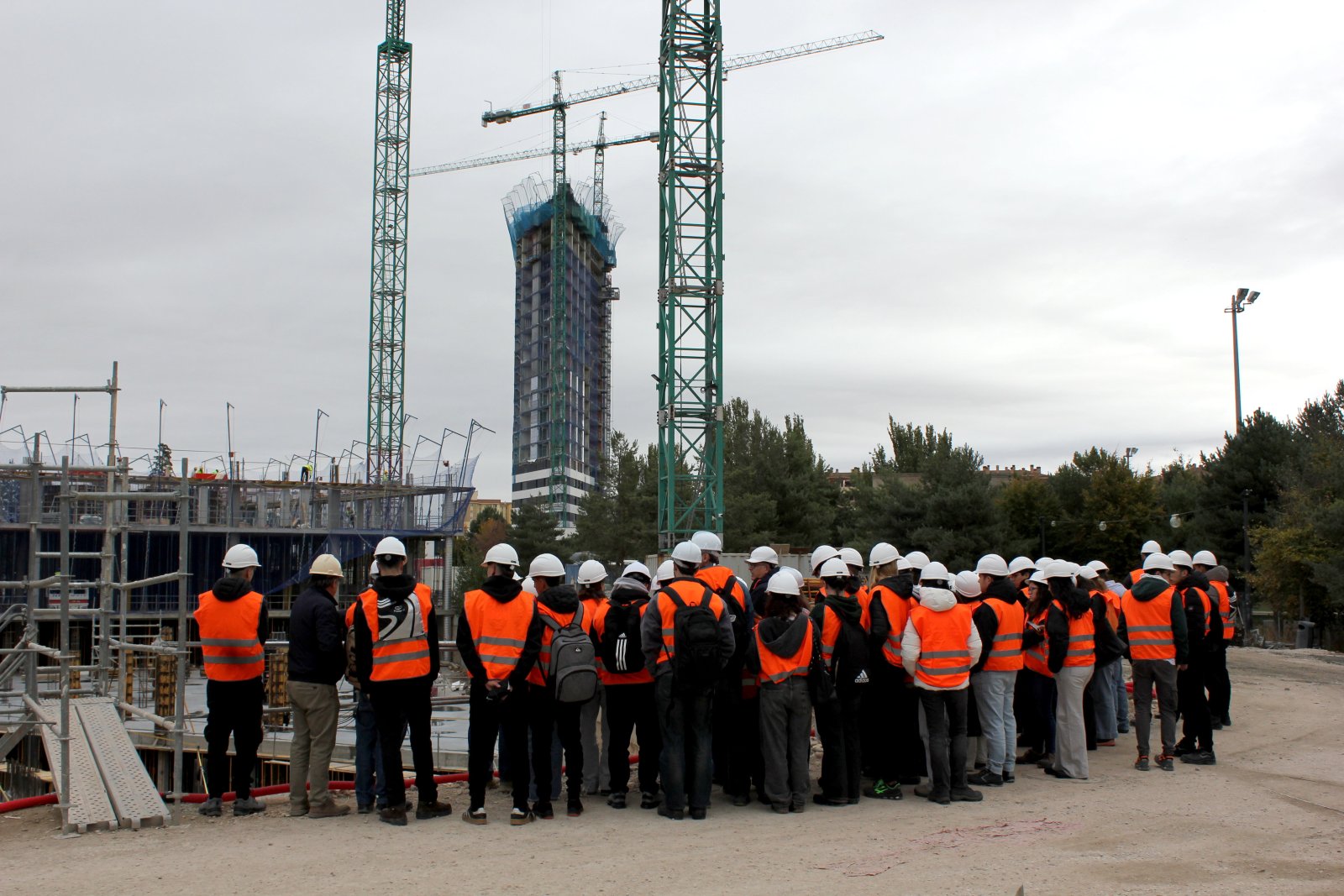 Un grupo de 142 estudiantes de primer curso del Grado en Arquitectura Técnica (AT) y del Doble Grado en Ingeniería Civil y Arquitectura Técnica de la Universidad de Burgos visitó las obras de las Torres Dúo (Residencial Bulevar de Burgos) como parte de la asignatura Construcción I.