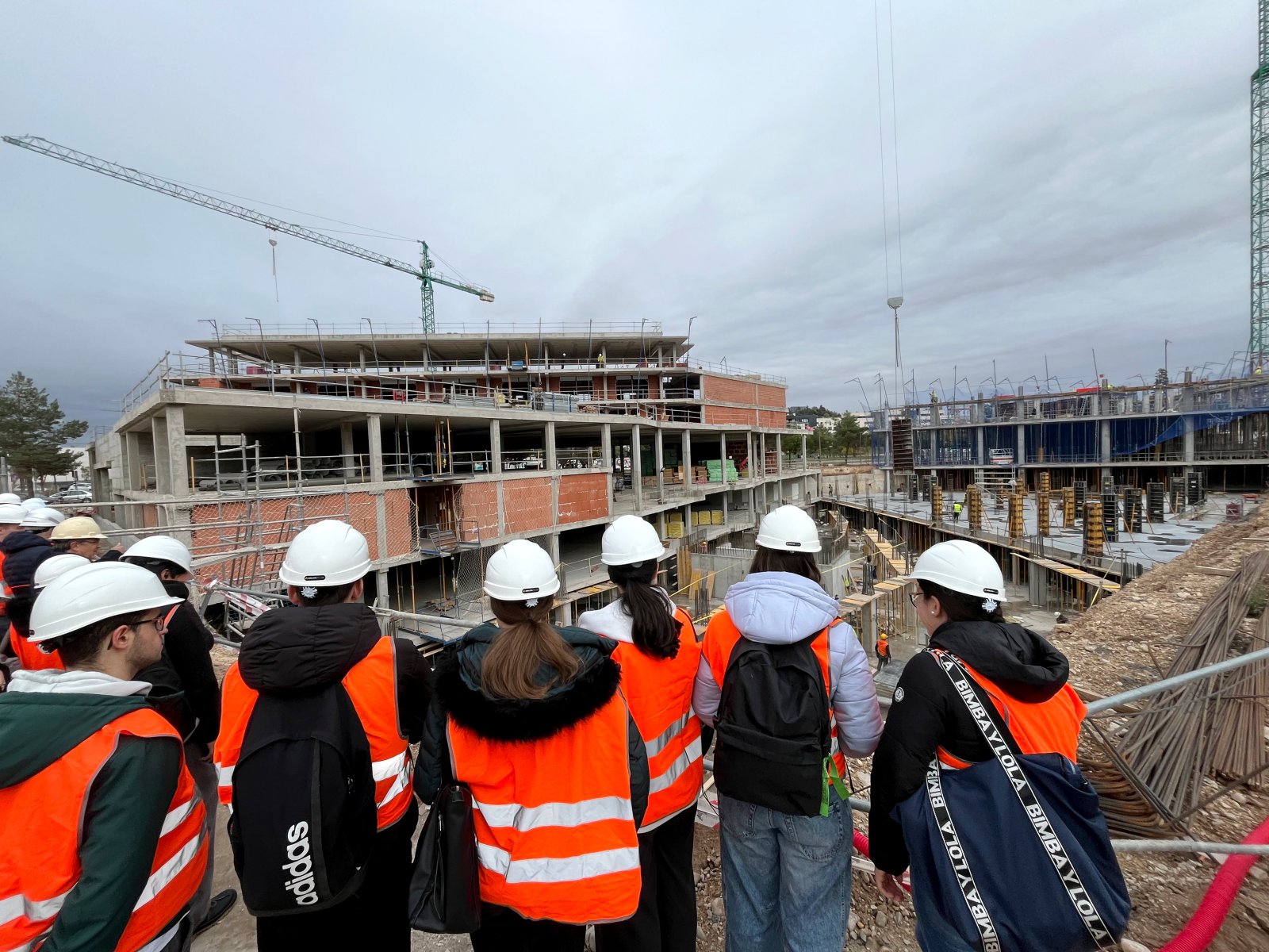 Durante la visita, los estudiantes pudieron observar de primera mano las diferentes fases de ejecución en las que se encuentra actualmente la construcción de las 235 viviendas que conforman el proyecto.
