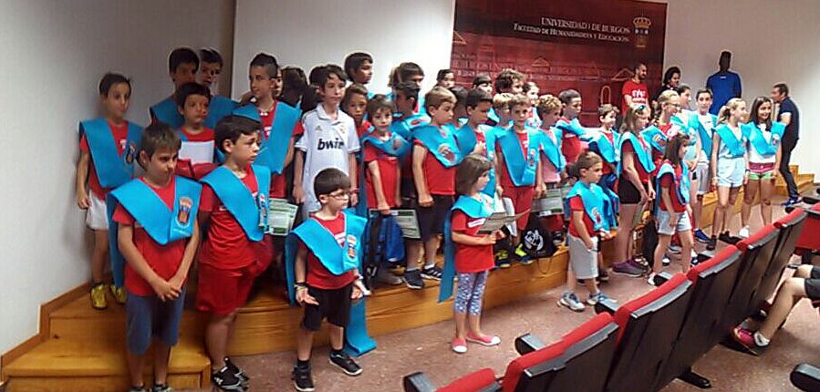 El Campus Deportivo de la UBU celebró su acto de clausura en el que se impuso a los 84 niños y niñas participantes su banda de graduación y recibieron un obsequio de manos de los vicerrectores de Estudiantes y Extensión Universitaria, René Jesús Payo y de Economía y Relaciones con la Empresa, José Luis Peña.