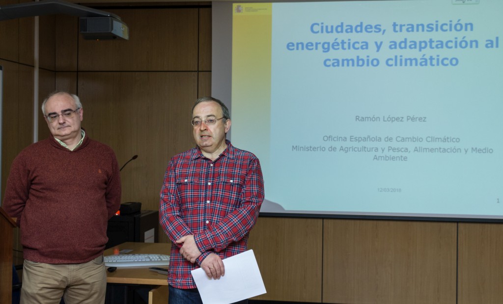 En la primera ponencia por Ramón López, de la Oficina Española de Cambio Climático. Mapama, se detalló las actuaciones del Gobierno de España para implementar una Ley de Cambio Climático, así como los compromisos de reducción de emisiones Gases de Efecto Invernadero y de incremento del uso de Energías Renovables, marcados por los acuerdos de París de 2015 y la Unión Europea.
