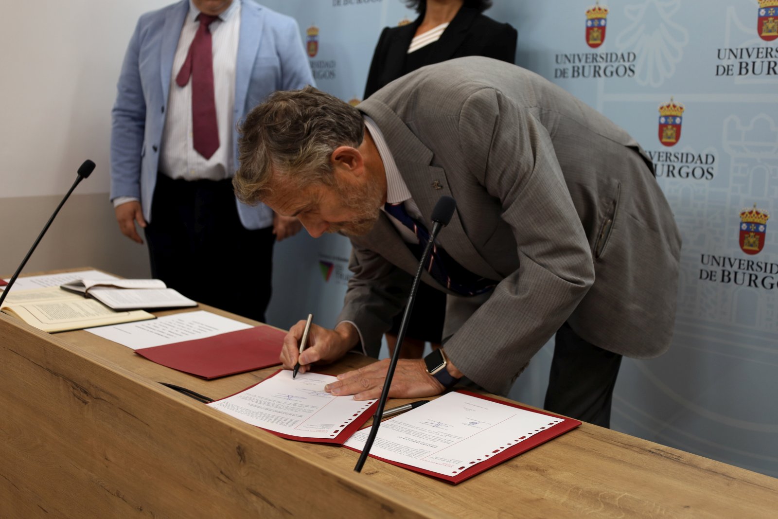 Tras agradecer el compromiso y responsabilidad que implica asumir estos cargos, el rector de la Universidad de Burgos, Manuel Pérez Mateos. El rector suscribió las palabras de Carlos Pérez e hizo hincapié en la importancia de combinar la tecnología con el humanismo, resaltando la necesidad de las humanidades en el avance científico y tecnológico. También elogió a la Facultad de Educación, resaltando su crecimiento espectacular, su reconocimiento a nivel nacional, y la calidad de la investigación y actividades realizadas en ella, aunque reconoció desafíos en cuanto a infraestructuras que aún persisten en la facultad.