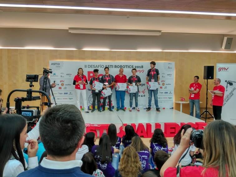 El equipo dirigido por el profesor Jesús Sagredo participó en la final del 2ª DESAFIO ASTI, la competición robótica móvil que despierta gran interés entre los jóvenes y en la que han participado este año cerca de dos mil personas, lo que ha supuesto el doble del número de participantes y estudiantes con altas capacidades que en 2017.