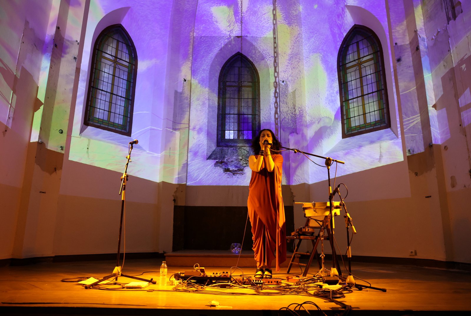 La voz y el sonido postfolk y postminimalista de la violinista y los audiovisuales, creados por Javier Llanillos para este nuevo espacio de la Universidad de Burgos dedicado a la cultura, trasladaron al público en un viaje por las diversas formas del agua.