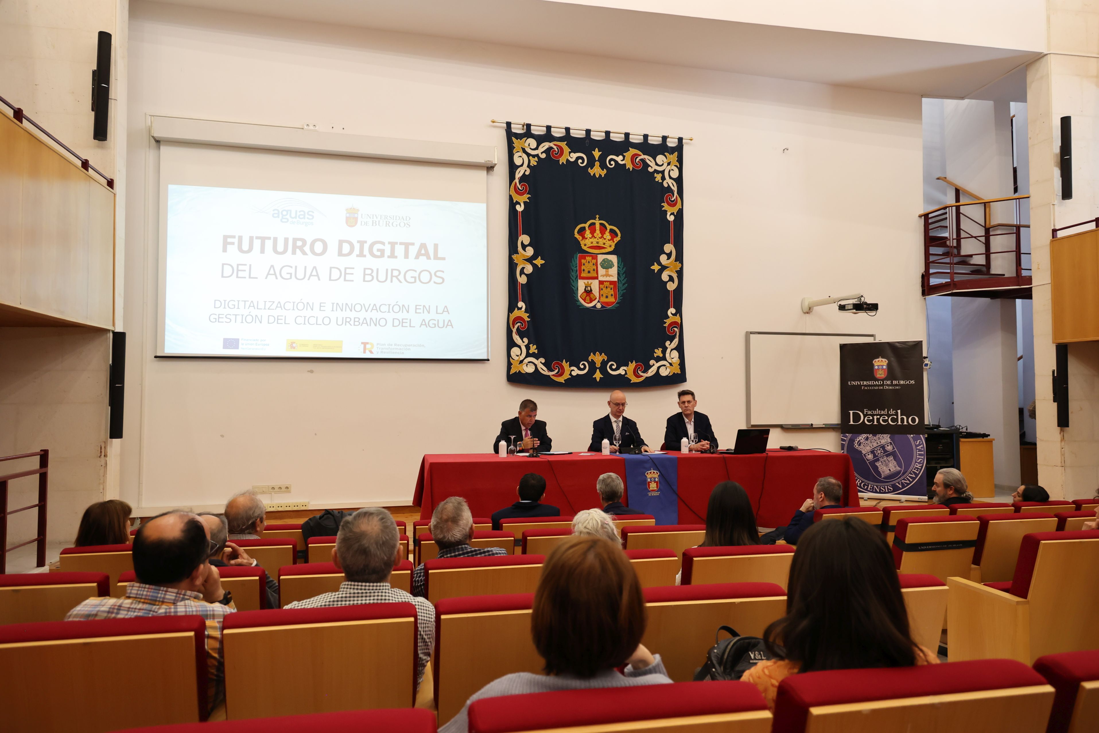 En este contexto, el rector de la Universidad de Burgos, José Miguel García, ha defendido el papel de la Universidad de Burgos como agente que “aporta valor a la sociedad en múltiples aspectos y de manera especial en lo referente a sostenibilidad e innovación” y ha destacado la importancia de la digitalización “para tomar mejores decisiones y más rápidas y para mejorar la eficiencia en el uso de este recurso tan relevante, incluso crítico”, ha añadido. Por su parte, presidente de Aguas de Burgos, Juan Manuel Manso Villalaín, ha subrayado la gran calidad de la gestión del agua en Burgos, “la primera en España en calidad de su agua potable y una de las primeras en la calidad del afluente que se vierte a nuestros ríos”, ha afirmado. Como ejemplo de ello, Manso ha recordado que el año pasado, durante el cero energético que se sufrió en toda la península, “ningún ciudadano burgalés se enteró de que esto había pasado porque no tuviera agua”. Ha explicado así que el sistema de emergencia se puso en marcha de manera inmediata y permitió recuperar la gestión autónoma de todos los sistemas en un tiempo récord. Algo que ocurrió, ha asegurado el presidente de Aguas de Burgos, “no por casualidad, sino porque nos anticipamos a los problemas y cuidamos nuestros recursos”, lo que se tratará de seguir mejorando “con la digitalización y la innovación y gracias a la colaboración con la Universidad de Burgos”.